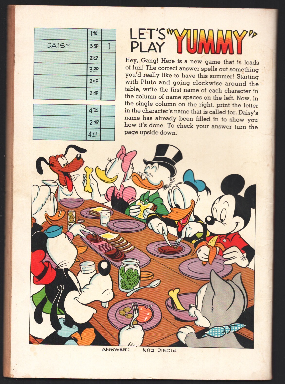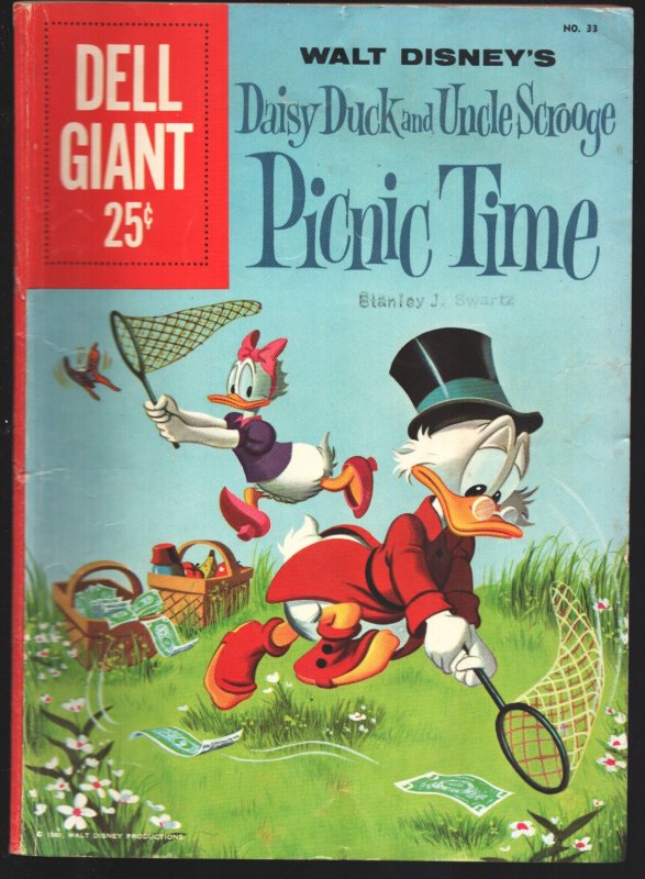 Walt Disney's Daisy Duck and Uncle Scrooge Picnic Time #33 1960-Bambi-Pluto -Dell Giant -Bambi- Capt. Hook-Gyro Gearloose-Pluto-Mickey & more Title: Walt Disney's Daisy Duck and Uncle Scrooge Picnic Time Issue: 33 Grade: VG, G SKU: LI-133-067Seller Information