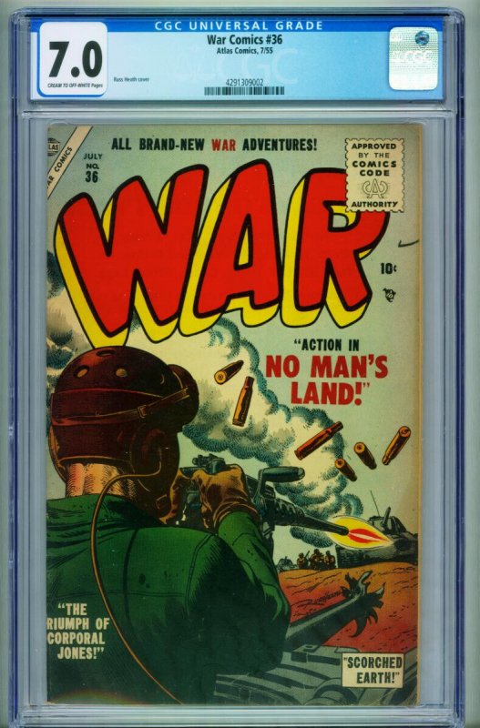 Grade: 7.0War #36 CGC 7.0 1955-Atlas-Russ Heath-Gene Colon WWII story-4291309002 -Gene Colon WWI story -Russ Heath art and cover Grade: 7.0 SKU: CTR-20-144