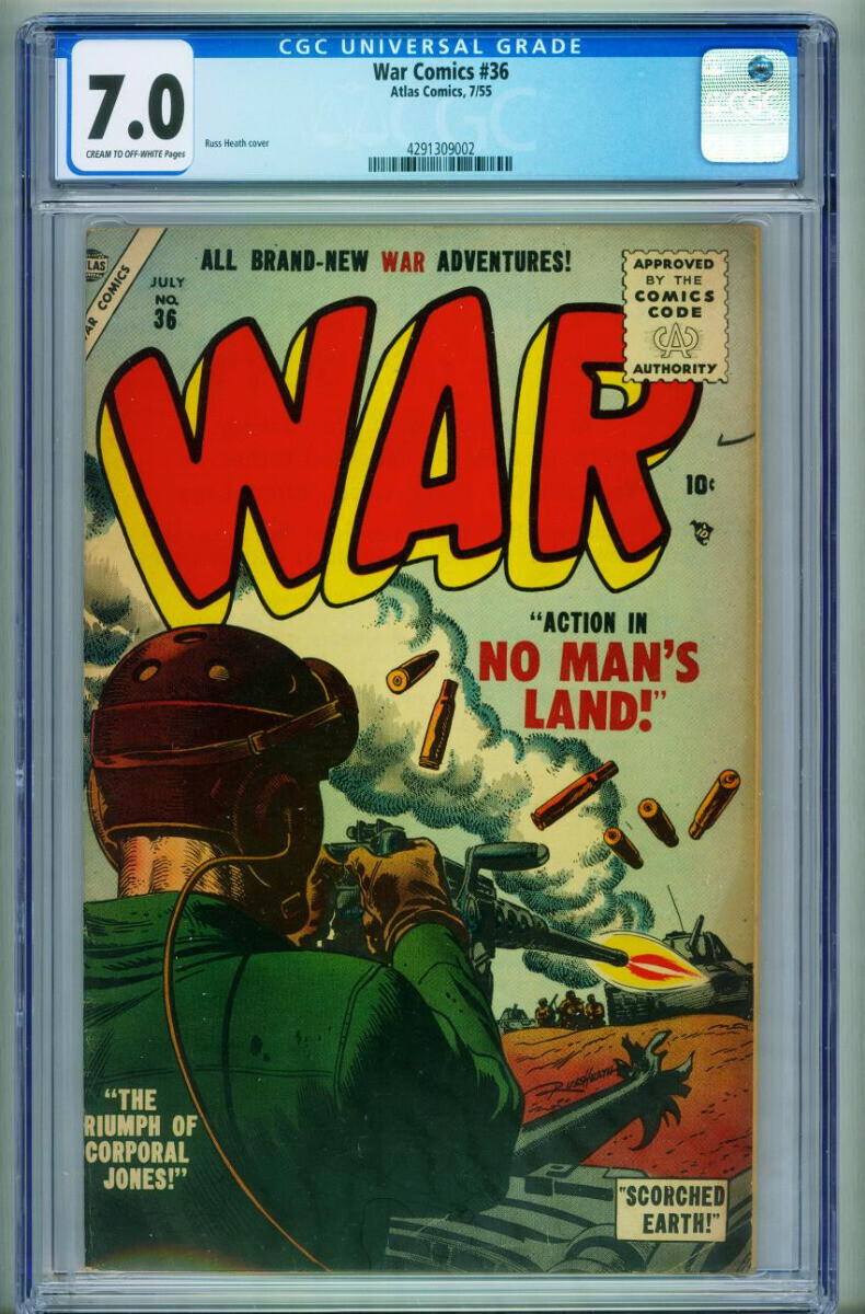 Grade: 7.0 War #36 CGC 7.0 1955-Atlas-Russ Heath-Gene Colon WWII story-4291309002 -Gene Colon WWI story -Russ Heath art and cover Grade: 7.0 SKU: CTR-20-144