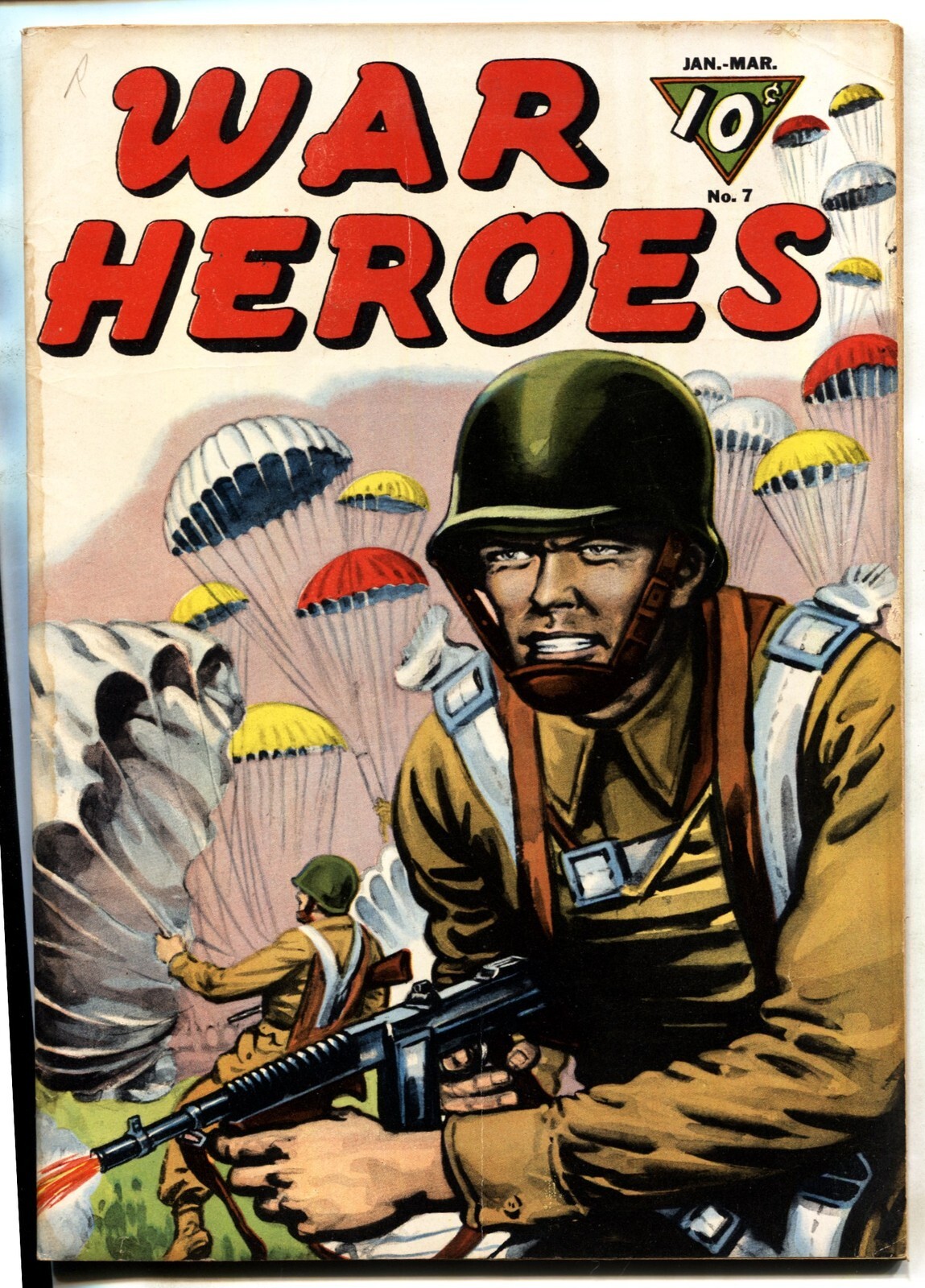 War Heroes #7-- 1944- Stefano di Camastra- Dell comic -Parachute paratrooper cover. -Bloody Ridge. -WWII action stories. -Stain along spine. TITLE: War Heroes ISSUE: 7 GRADE: VG- SKU: VE-23-182
