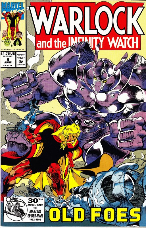 Warlock and the Infinity Watch #5 by Marvel Comics copyright 1992. I have graded the comic book, using the Overstreet Grading Guide, at FINE+ with the following defects: Light stress marks along the spine. The corners are starting to round. There is some light yellowing of the pages.Seller Information