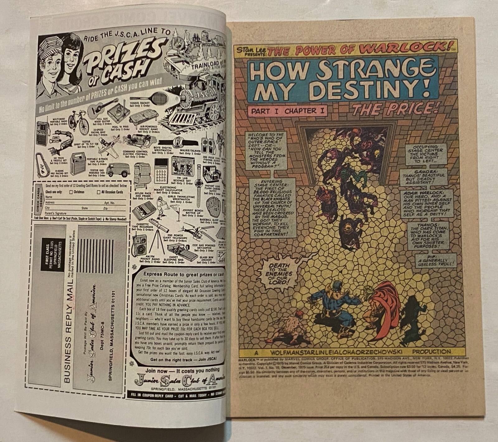 Condition: NEAR MINT- From an original owner collection.Warlock (Marvel, 1972) 10 Near Mint- (Thanos & Gamora Origin!). From an original owner collection.All books graded by Frank, and backed by our no-questions-asked money back guarantee.We encourage you to browse our store. If you buy multiple items, there's a good chance you'll save a substantial amount on shipping by combining multiple orders into one box. Friendly Frank's was started in 1978 with a $40 investment. We started Friendly Frank's Distribution in 1982, the regional distributors Co-Op Jam in 1983, the Comic Book Legal Defense Fund in 1986, and B-Bop Comics in Kansas City in 1999. A member of the 100 Million Sold Club. Largest buyer and seller of old comics in Kansas and Missouri. Thank you!