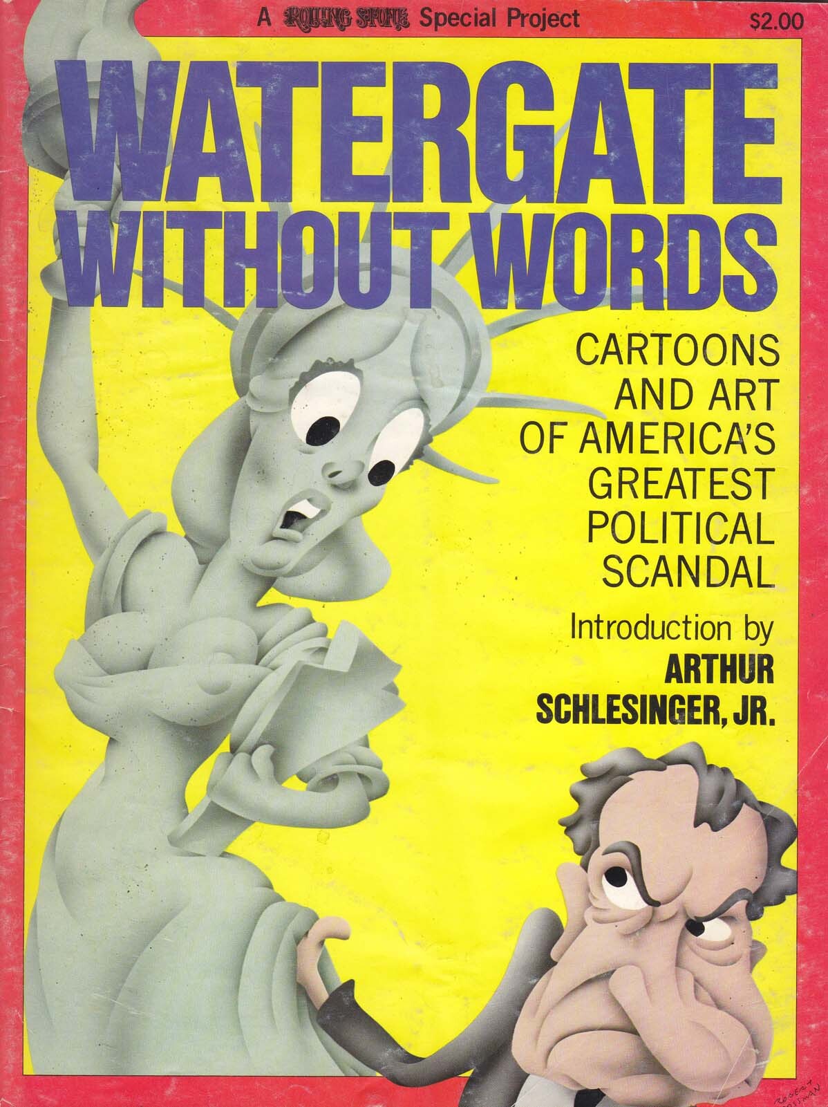 Item: Watergate Without Words #1 | Publisher: Straight Arrow | Cover Date: 1975 | Notes: Cartoons and art of America's Greatest Political Scandal; Introduction by Arthur Schlesinger, Jr.; A Rolling Stone Special Project | With Economy shipping, each additional comic ships for just 50 cents more to customers in the USA. This listing contains a stock photo and information from ComicBase™ and © Human Computing. The stock photo is for reference only. If you would like to see a photo of the actual item, please message us prior to purchasing.