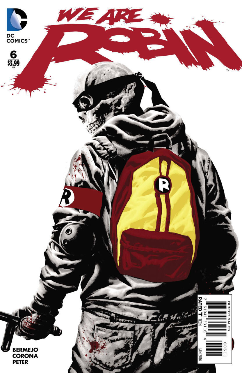 series : WE ARE ROBIN 2015 u.s. price : 3.99 on sale date : Nov 25 2015 volume/issue # : 6 color/b&w : Color trim size : Comic page count : 32 rated : Teen cover by : Jorge Corona written by : Lee Bermejo art by : Jorge Corona