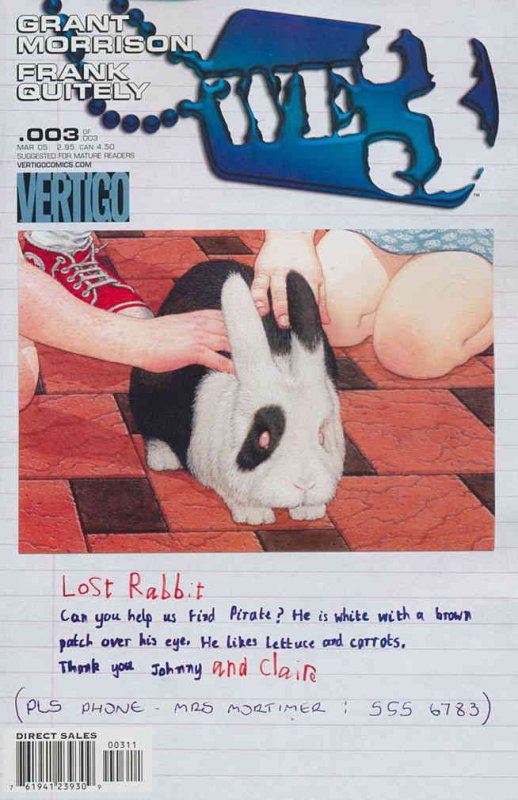 Item: WE3 #3 | Publisher: DC/Vertigo | Cover Date: March 2005 | Writer: Grant Morrison | Artist: Frank Quitely | With Economy shipping, each additional comic ships for just 50 cents more to customers in the USA. This listing contains a stock photo and information from ComicBase™ and © Human Computing. The stock photo is for reference only. If you would like to see a photo of the actual item, please message us prior to purchasing.Seller Information