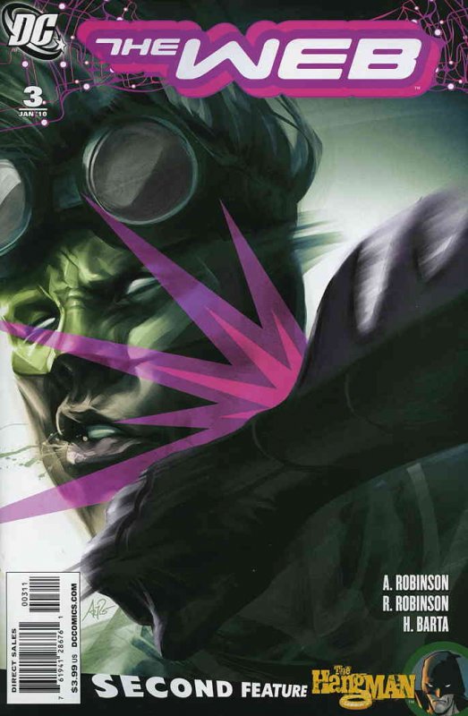 Item: Web (DC), The #3 | Publisher: DC | Cover Date: January 2010 | Writer: Angela Robinson, John Rozum | Artist: Roger Robinson, Tom Derenick | Cover Artist: Stanley Lau | Appearances: Web (John Raymond), Batgirl (Stephanie Brown), Oracle (Barbara Gordon), Hangman (Robert Dickering) | Storylines: Spinning the Future, Part 3; The Hangman: The Roar of the Sea | With Economy shipping, each additional comic ships for just 50 cents more to customers in the USA. This listing contains a stock photo and information from ComicBase™ and © Human Computing. The stock photo is for reference only. If you would like to see a photo of the actual item, please message us prior to purchasing.Seller Information