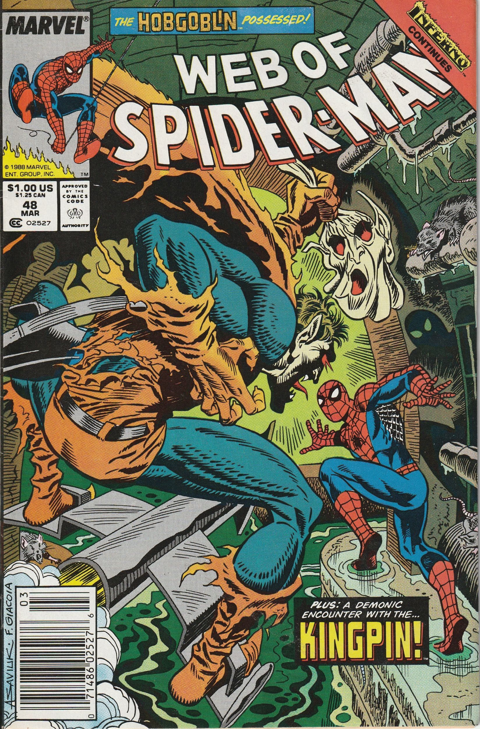 Web of Spider-Man #48 (1989) Inferno Tie In ! Hobgoblin !