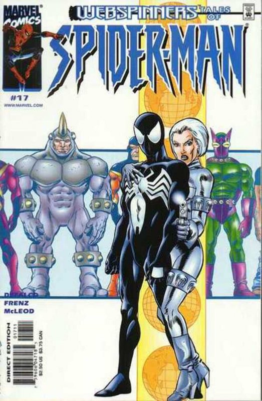 Condition: NOTE: Hip requires a generic item-condition (New / Like New / Very Good). This required field is ... Read more about the seller notes NOTE: Hip requires a generic item-condition (New / Like New / Very Good). This required field is for listing compliance only. The real comic grade (VF / FN / VG / GD / Poor, etc.) is written in the Description — please refer to the Description for the true grade, not the Hip condition header. Read Less about the seller notesWebspinners: Tales of Spider-Man #17 [VF/NM] Grade: VF/NMNote: STOCK IMAGEIssue Number: 17Release Date: 2000-05-31Writer: Artist: It's a new story arc, set in the time when Spider-Man was bouncing around in his mysterious black costume! Spidey joins forces with mercenary Silver Sable! But why is the wall-crawler involved in some international intrigue?Spider-Man's normal routine is interrupted by ten anonymous goons with a Spider-signal, a lá Batman. They don't give Spidey much difficulty, but Silver Sable calls him off before he can completely thrash them. She admits she was looking for him and merely wanted to verify his identity. They travel to the Symkarian embassy where Sable lays all of her cards on the table. It seems that the ruling monarch of the country of Belgruin (don't bother with an atlas; I'm guessing it's right next to "Symkaria") has been overthrown by rebels that are being aided by the Beetle, Rhino, Speed Demon, Hydro-Man, and Boomerang, who make up the Sinister Syndicate. She has been contracted to restore the king. Spider-Man listens patiently until Sable reveals that the king was a tyrant and the rebels are pro-democracy, at which point he tries to leave in disgust. But the king has an eleven-year-old daughter, and if Spidey "won't help for a share of the money, how [would he] feel about saving a child?"In Belgruin, all is not well for the Beetle. Sure, he and his cohorts are treated like heroes (a role that he enjoys) and they haven't run into any difficulty, but his relationship with the rest of the Syndicate is fragile in the best of times, much to the chagrin of the palace room they trash in a scuffle. More importantly, the Beetle is feeling bad about pretending to support the rebels as a ploy to steal the contents of the royal treasury. The shadowy man the Beetle is reporting to has no such concerns, however.Meanwhile, Silver Sable, Sandman, and Spidey (all decked out in his black suit) are parachuting into Belgruin under cover of darkness. Inadequate cover, as it turns out, since the draw the rebels' fire before they even manage to land. Spider-Man is separated from the other two and dons one of the soldier's outfits for cover, deciding to walk to a nearby village in order to avoid suspicion. He arrives shortly after daybreak in time to catch the parade the rebels are throwing for the Sinister Syndicate. The language barrier proves costly for Spidey, who spooks after an old woman takes notice of him and reveals his true identity. Just in time to take a beating from the Syndicate, none of whom are exhausted from walking all night and have little trouble wearing down the web-slinger to the point that the angry crowd can capture him.All of this provides a great show for the mystery man who's running the Syndicate. But then, one would expect little else from Doctor Octopus... Webspinners: Tales of Spider-Man #17 [VF/NM] Grade: VF/NMNote: STOCK IMAGEIssue Number: 17Release Date: 2000-05-31Writer: Artist: It's a new story arc, set in the time when Spider-Man was bouncing around in his mysterious black costume! Spidey joins forces with mercenary Silver Sable! But why is the wall-crawler involved in some international intrigue?Spider-Man's normal routine is interrupted by ten anonymous goons with a Spider-signal, a lá Batman. They don't give Spidey much difficulty, but Silver Sable calls him off before he can completely thrash them. She admits she was looking for him and merely wanted to verify his identity. They travel to the Symkarian embassy where Sable lays all of her cards on the table. It seems that the ruling monarch of the country of Belgruin (don't bother with an atlas; I'm guessing it's right next to "Symkaria") has been overthrown by rebels that are being aided by the Beetle, Rhino, Speed Demon, Hydro-Man, and Boomerang, who make up the Sinister Syndicate. She has been contracted to restore the king. Spider-Man listens patiently until Sable reveals that the king was a tyrant and the rebels are pro-democracy, at which point he tries to leave in disgust. But the king has an eleven-year-old daughter, and if Spidey "won't help for a share of the money, how [would he] feel about saving a child?"In Belgruin, all is not well for the Beetle. Sure, he and his cohorts are treated like heroes (a role that he enjoys) and they haven't run into any difficulty, but his relationship with the rest of the Syndicate is fragile in the best of times, much to the chagrin of the palace room they trash in a scuffle. More importantly, the Beetle is feeling bad about pretending to support the rebels as a ploy to steal the contents of the royal treasury. The shadowy man the Beetle is reporting to has no such concerns, however.Meanwhile, Silver Sable, Sandman, and Spidey (all decked out in his black suit) are parachuting into Belgruin under cover of darkness. Inadequate cover, as it turns out, since the draw the rebels' fire before they even manage to land. Spider-Man is separated from the other two and dons one of the soldier's outfits for cover, deciding to walk to a nearby village in order to avoid suspicion. He arrives shortly after daybreak in time to catch the parade the rebels are throwing for the Sinister Syndicate. The language barrier proves costly for Spidey, who spooks after an old woman takes notice of him and reveals his true identity. Just in time to take a beating from the Syndicate, none of whom are exhausted from walking all night and have little trouble wearing down the web-slinger to the point that 