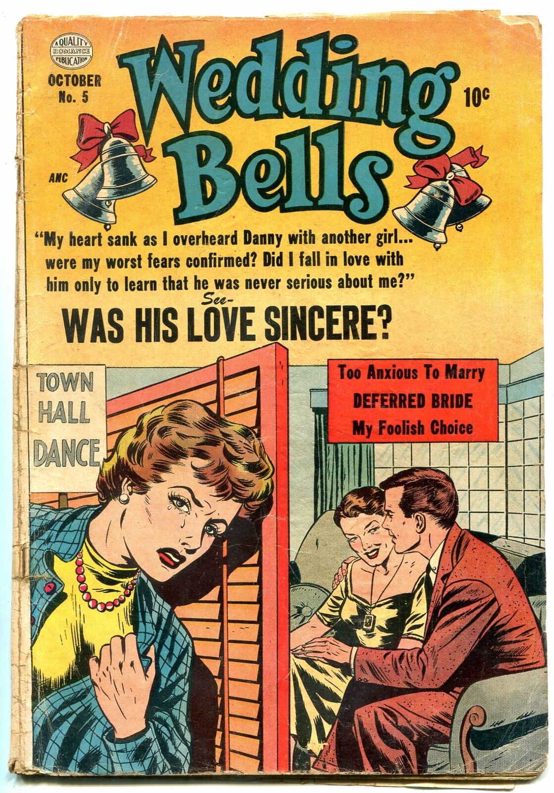 Wedding Bells Issue: 5 / Year: 1954 Condition: G/VGPre-code issue, loaded with good art. Publisher: QualitySku: DO-07-283 Over 100,000 mail orders processed! Buy with confidence.