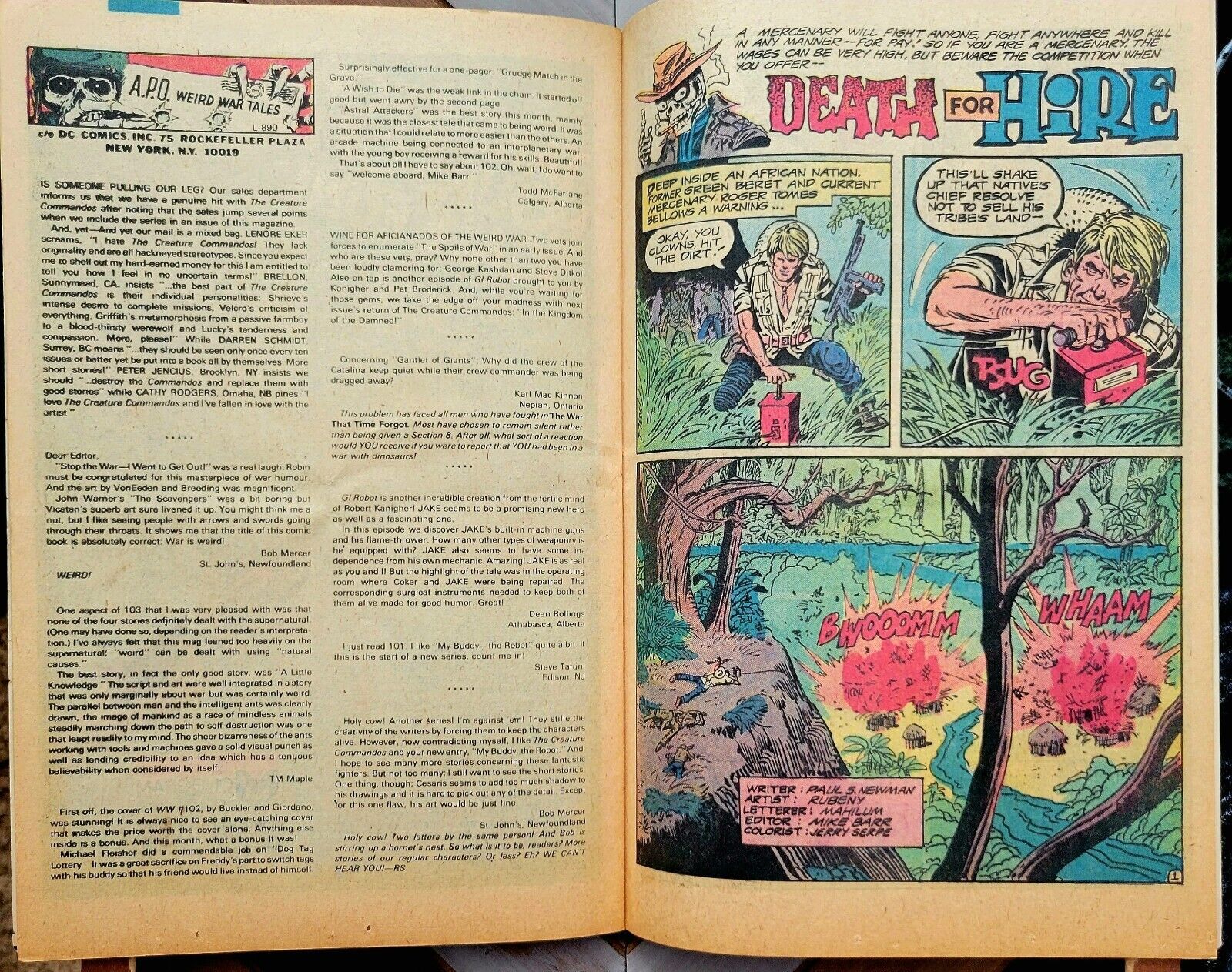 WEIRD WAR TALES #107 VG DC 1982 WWII Kubert Cover HORROR + Todd McFarlane Letter