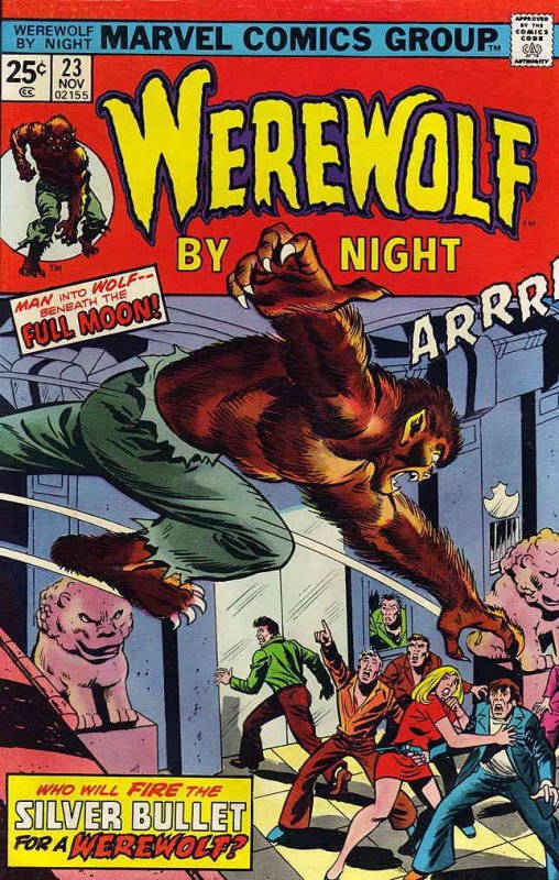 Item: Werewolf By Night #23 (with Marvel Value Stamp) | Publisher: Marvel | Cover Date: November 1974 | Writer: Doug Moench | Artist: Don Perlin | Cover Artist: Ron Wilson | Appearances: Jack Russell, Buck Cowan, St ... Read More