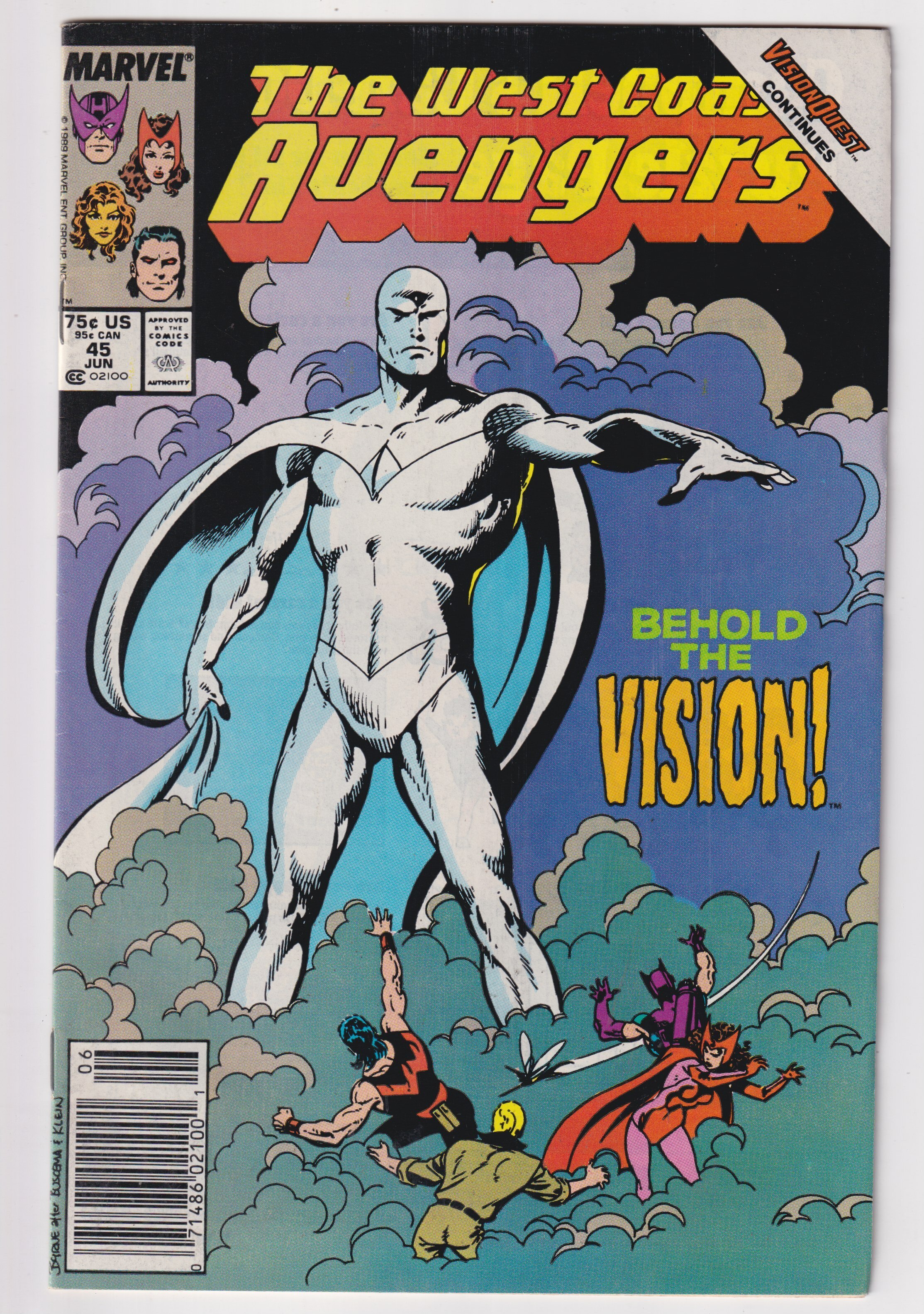 West Coast Avengers #45 (1989) 1st White Vision, newsstand!