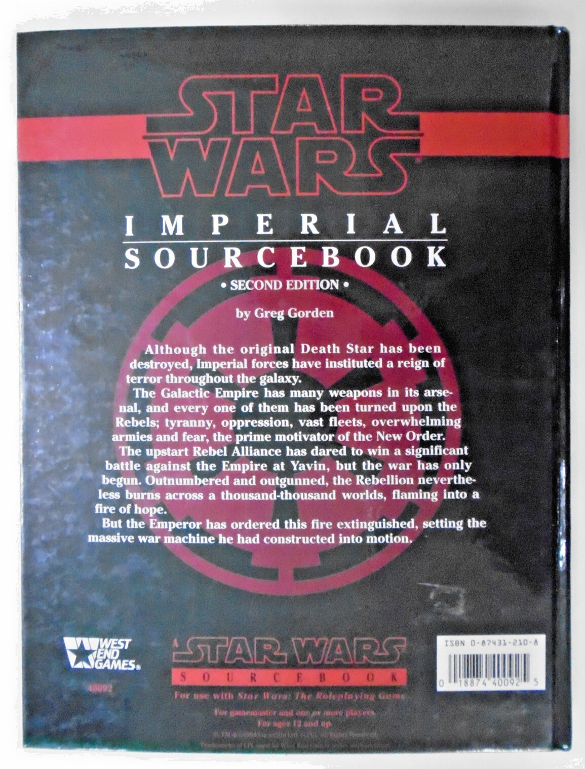 Condition: See Photos West End Star Wars: Imperial Sourcebook, Revised 2nd Ed. All books graded by Frank, and backed by our no-questions-asked money back guarantee.We encourage you to browse our store. If you buy ... Read More
