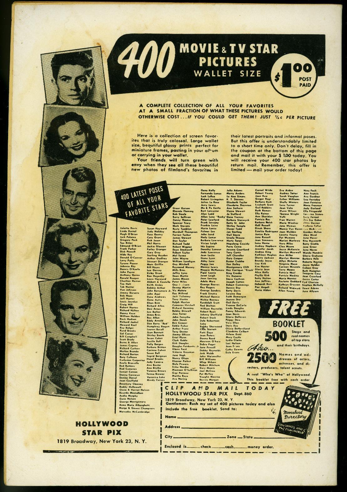 Grade: FN+Western Killers NO # 1948- Range Busters- Golden Age Weird misprint issue Range Busters, John Wesley Hardin. Glossy cover. This is one of the odd Fox publications that should have had the 1st page on the inside front cover but has ad instead. The first page is revered, story reads page 3 then 2 then 4. Weird misprint. Grade: FN+ SKU: U1-13-255