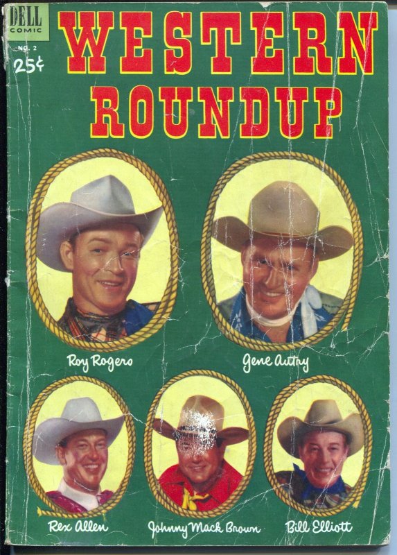 Grade: GWestern Roundup #2 1953-Dell-photo cover-Roy Rogers-Rex Allen-Bill Elliott-G -Giant Edition, photo cover -Roy Rogers, Bill Elliott, Rex Allen, Johnny Mack Brown Grade: G SKU: LI-36-254