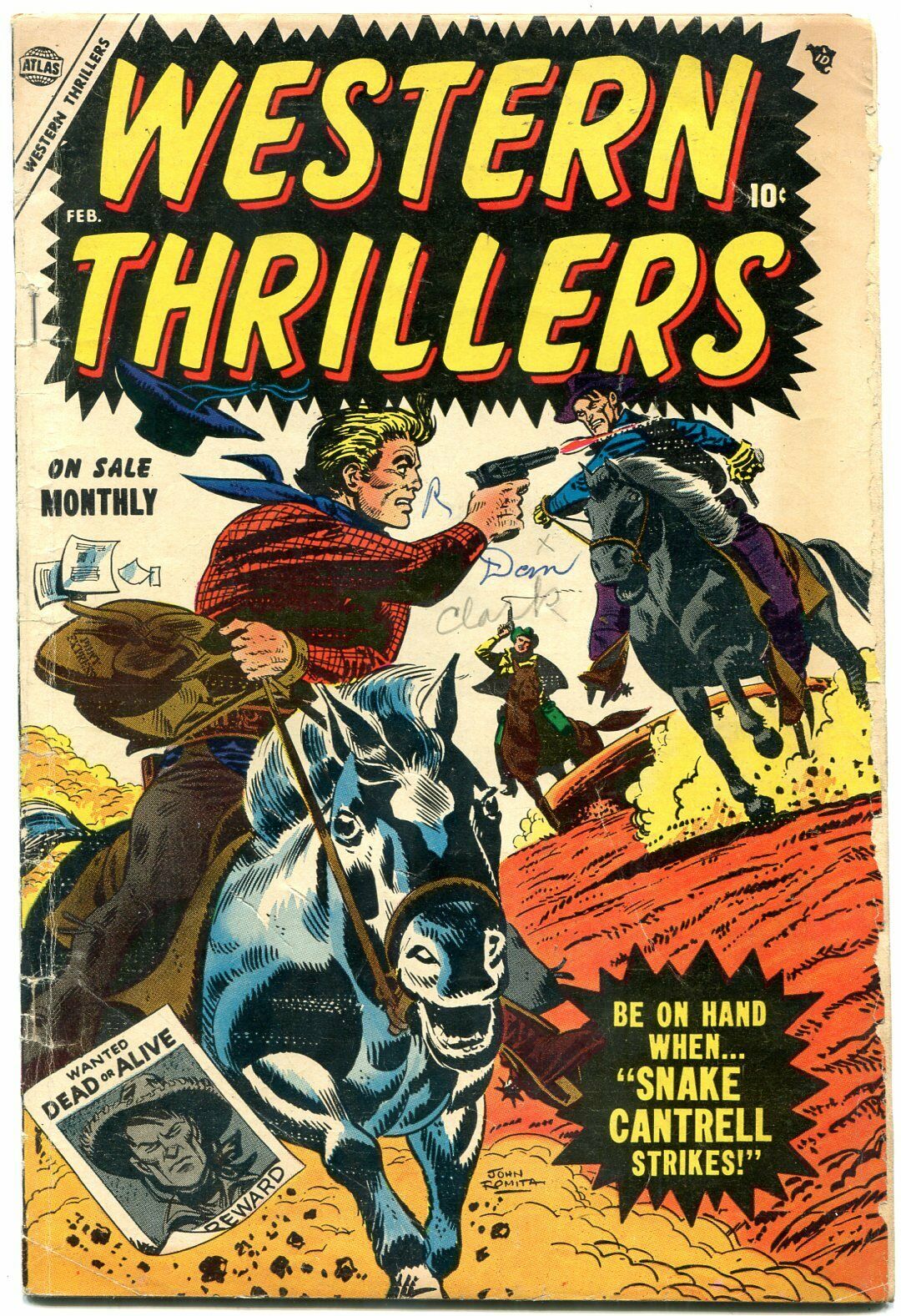 Condition: Condition is VG . Please see item description for more information. Grade: VG Western Thrillers Issue: 4 / Year: 1955 Condition: VG1955 pre-code Atlas western comic book. Unusual John Romita cover has ... Read More