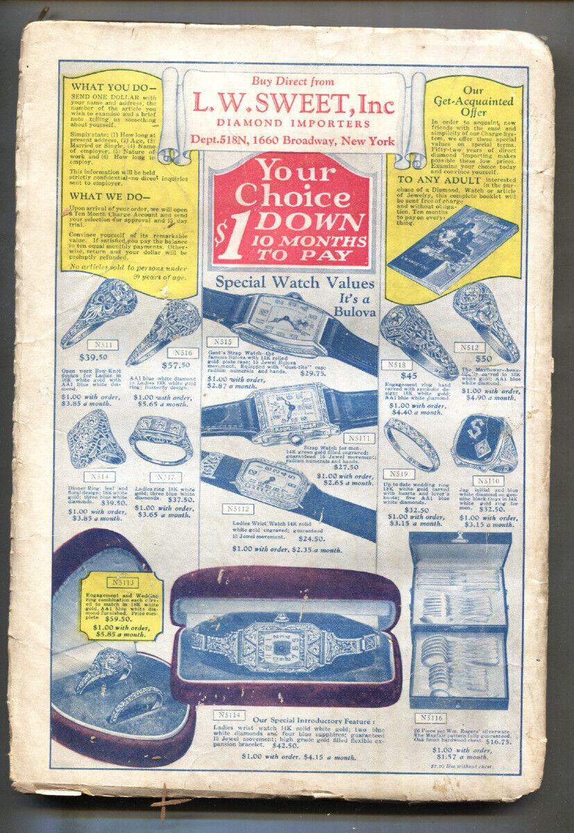 Classic issue of this aviation pulp. Full of great stories and interior artwork, vintage ads, etc. Piece off cover. Grade:G