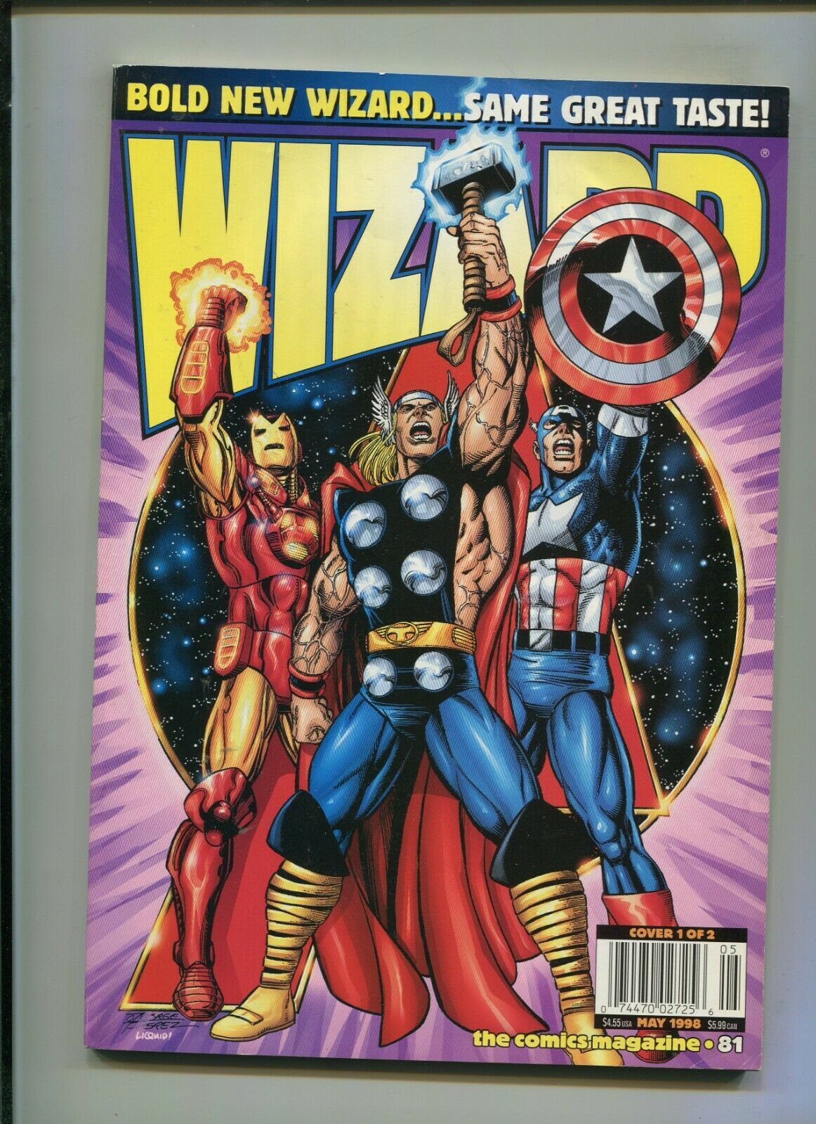 WIZARD #81 (8.0) PEREZ AVENGERS COVER!! 1998 Size: 7" x 10" This item was uploaded by Ale. WE COMBINE SHIPPING!!! Either wait for us to send you an invoice after you commit to buy or, if it makes you pay right ... Read More