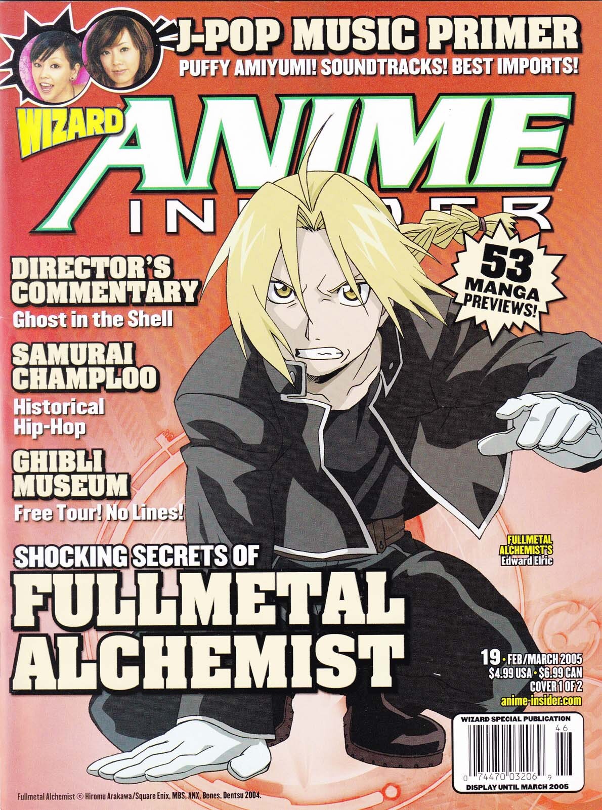 Item: Wizard Anime Insider #19A | Publisher: Wizard | Cover Date: February 2005 | Notes: Fullmetal Alchemist cover; Ghost in the Shell Director’s Commentary; Samurai Champloo | With Economy shipping, each additional comic ships for just 50 cents more to customers in the USA. This listing contains a stock photo and information from ComicBase™ and © Human Computing. The stock photo is for reference only. If you would like to see a photo of the actual item, please message us prior to purchasing.