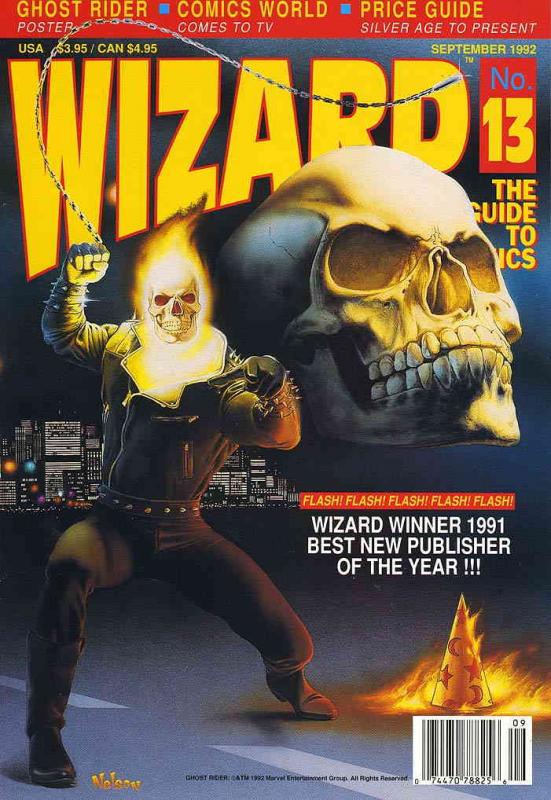 Item: Wizard: The Comics Magazine #13 | Publisher: Wizard | Cover Date: September 1992 | Writer: Robert V. Conte, Joe Jusko, Robert Samsel, Nelson, Patrick Daniel O’Neill, Andy Mangels, Tom Palmer Jr., Bart Sears, Glenn Rubenstein | Artist: Joe Jusko, Nelson, Bart Sears, Jason Christensen, Scott Rosenthal, Joseph S. Pavone, Stan Tanaka, Doug Lau, Adrian Scott, Bernard Danovich, Juan Alcantara, Erik A. Enervold, James Widmark, Jason Meek, Mark Counts, Mike King, Phoukham Sackda, Chris Battle, Lonnie Allen, Brian Kim, Jefferey Mercer, Sam Singer | Cover Artist: Nelson | Appearances: Ghost Rider | Storylines: Joe Jusko interview; Nelson interview; Spirits of Vengeance | Notes: Ghost Rider poster insert; Joe Jusko interview; Nelson interview | With Economy shipping, each additional comic ships for just 50 cents more to customers in the USA. This listing contains a stock photo and information from ComicBase™ and © Human Computing. The stock photo is for reference only. If you would like to see a photo of the actual item, please message us prior to purchasing.