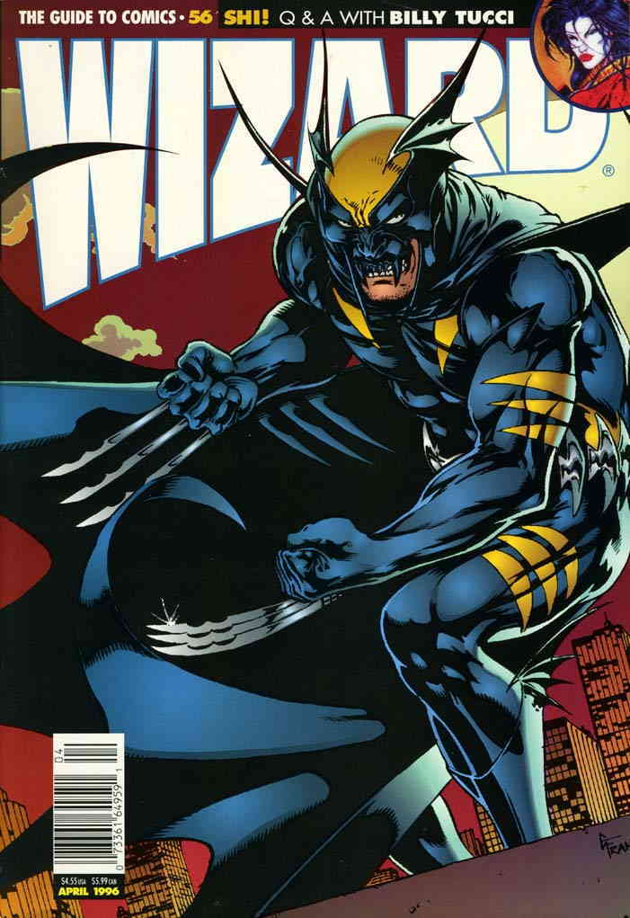 Item: Wizard: The Comics Magazine #56B | Publisher: Wizard | Cover Date: April 1996 | Writer: Craig Shutt, Rob Allstetter, Bill Tucci, Marc Shapiro, Matt Brady, Scott McCloud, Carl Gustav Horn, Greg Capullo, Tom Palmer Jr., John Byrne, Gary Frank | Artist: Ian Anthony, Derrick Holloman, Gustavo Vazquez, Travis J. Williams, Bill Tucci, Mark Texeira, Scott McCloud, Joe Madureira, J. Scott Campbell, Arthur Adams, Joe Kubert, Greg Capullo, Davy Apis, Ron Riley, Andrew Phillips, Teddy Whittenbarger, J. Wade Webb, Terri Nickelson-Williams, Alfredo Escarcega, Michael Oscar, Basheer Abdulmusawwir, Gary Frank | Cover Artist: Gary Frank | Storylines: Come Together; The Wizard Q+A: Billy Tucci; Casting Call 14; Fit to Print; First Look: Spider-Man: Legacy of Evil; Sonic Youth; Understanding Manga; American Manga; Fax of Life. And Death | Notes: Dark Claw (Wolverine/Batman amalgam character) cover; Billy Tucci interview | With Economy shipping, each additional comic ships for just 50 cents more to customers in the USA. This listing contains a stock photo and information from ComicBase™ and © Human Computing. The stock photo is for reference only. If you would like to see a photo of the actual item, please message us prior to purchasing.