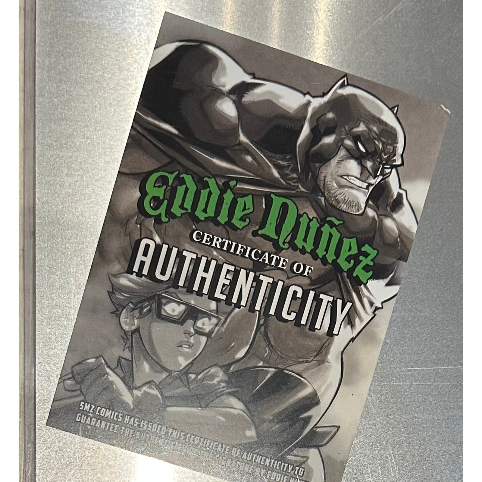 Wolverine 11x17 GOLD METAL Art Print – Signed by Eddie Nunez (Limited to 10) Bring the berserker rage to your wall with this ultra-limited Wolverine 11x17 gold metal art print, featuring raw, dynamic artwork by superstar comic artist Eddie Nunez. Printed on brilliant brushed gold aluminum, this piece captures Logan in a primal, savage snarl—adamantium claws extended and ready to strike. The splattered background and fierce expression bring the untamed nature of Wolverine to life in razor-sharp detail. Signed by Eddie Nunez in bold red ink Extremely limited edition – only 10 pieces exist (this is #7/10) Printed on premium gold brushed metal for a radiant, collector-grade finish Size: 11x17 inches – ideal for framing and display Features Nunez’s signature gritty, high-impact style Includes hand-numbering on the print for authenticity Whether you’re a die-hard Wolverine fan or a collector of rare Marvel artwork, this low-run gold metal edition is a true standout—both in craftsmanship and rarity. From the jagged detail of the claws to the blazing metallic finish, this piece is built to catch the eye and dominate your comic wall. Ships securely in a protective sleeve with reinforced packaging to ensure safe arrival.