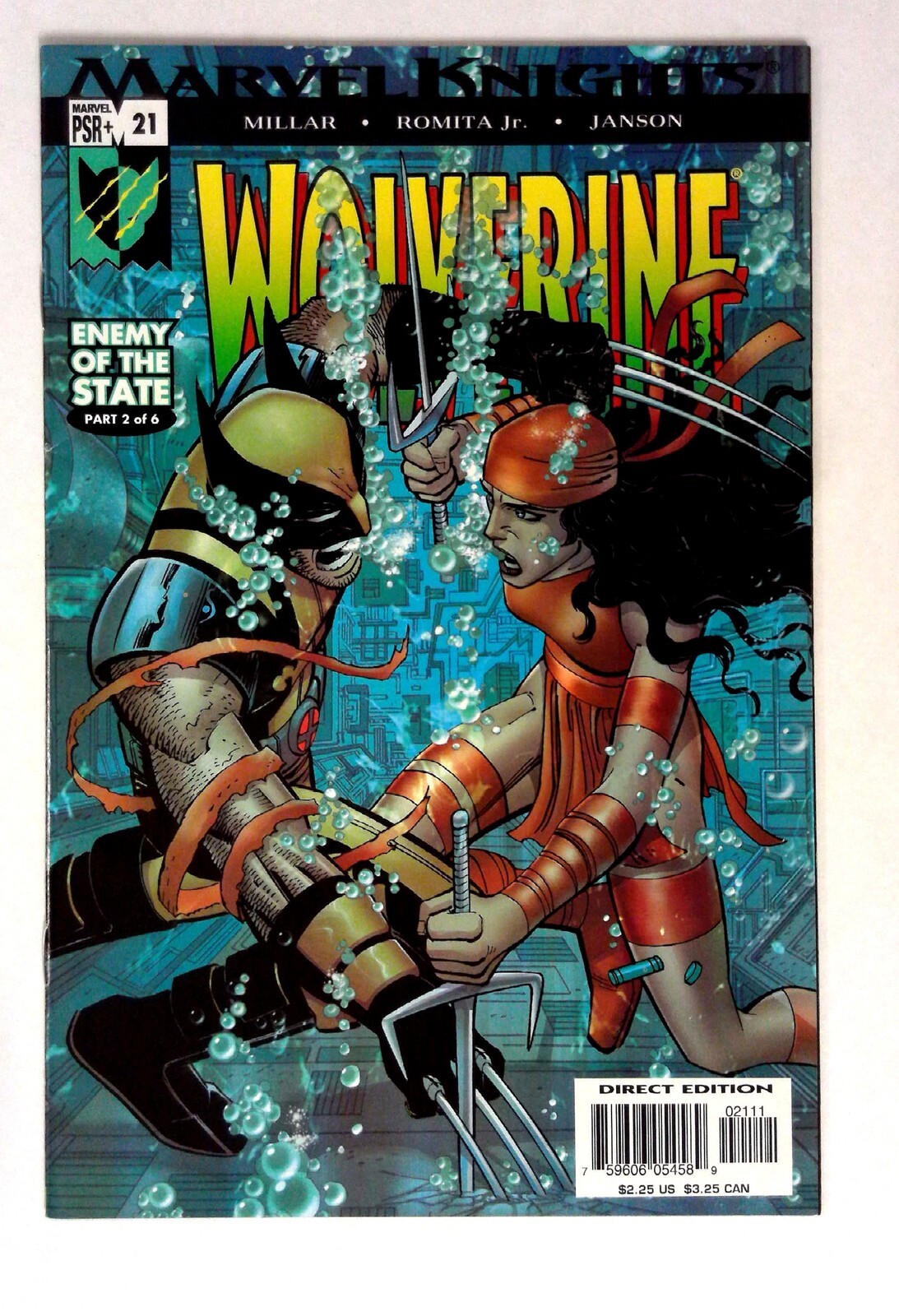 Wolverine #21 (2005) NM- Wolverine Marvel Wolverine In 'Enemy of the State: Part 2 of 6', Wolverine and Elektra engage in an intense underwater battle. Illustrated by Romita Jr., this issue is a visual treat with dy ... Read More
