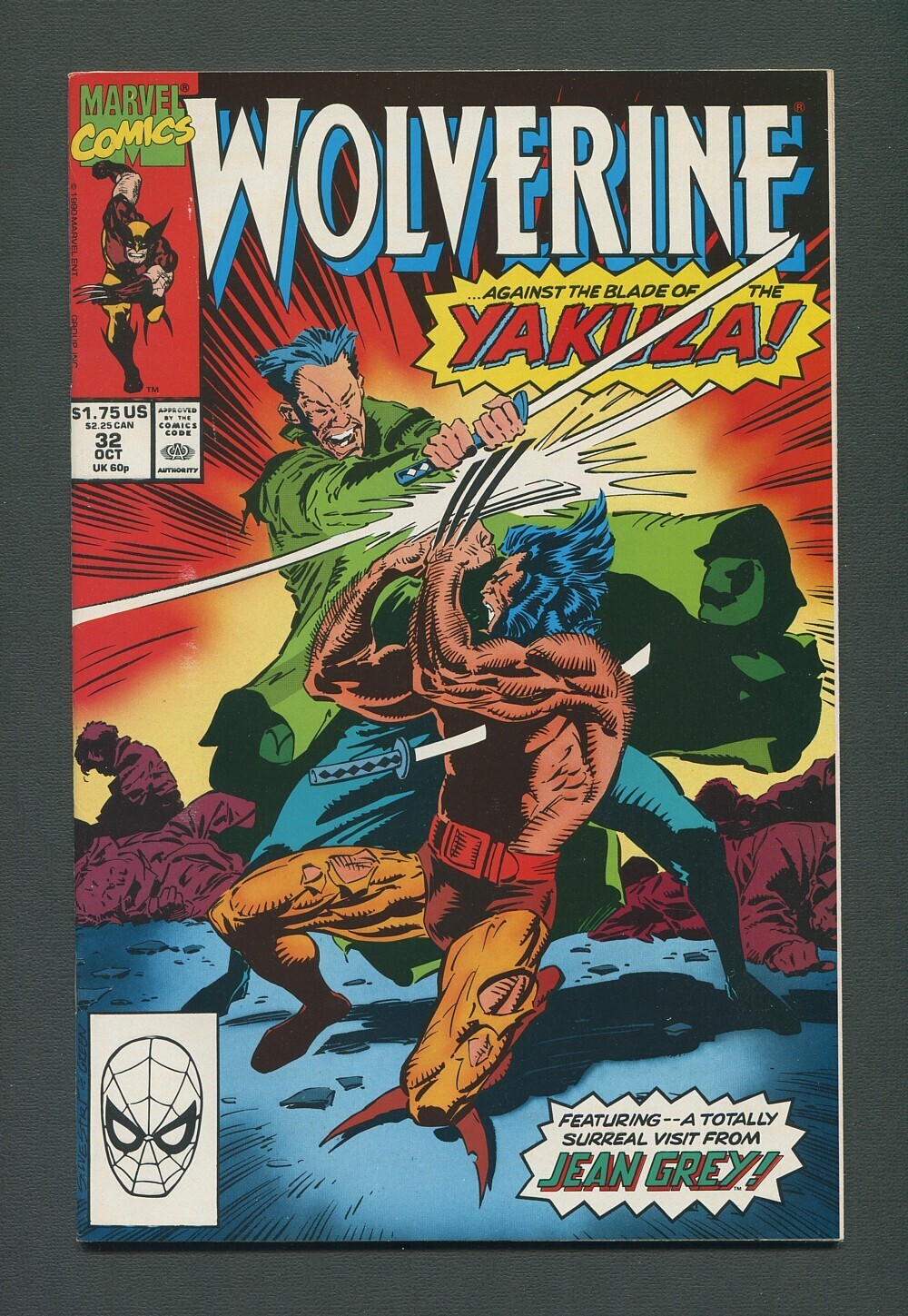 "Terminal Trauma!" Jean Grey Cameo. Written by Larry Hama. Art by Marc Silvestri and Dan Green. Ambushed by two assassins, Wolverine finds himself impaled by a katana blade. If he survives that, can the feral X-Man solve the mystery behind the deadly new drug hitting the streets of Mandripoor.