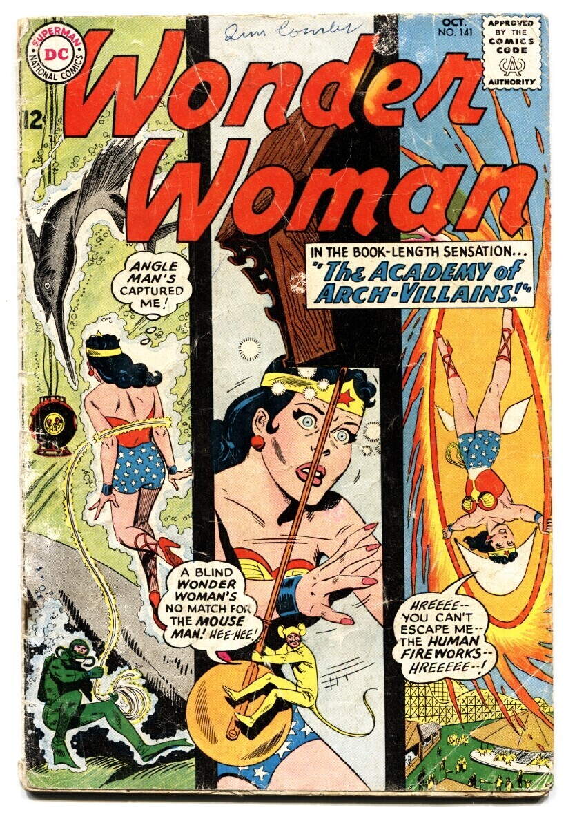 Grade: G/VGWONDER WOMAN #141 comic book 1963-DC COMICS-Silver-Age Arch Villain issue. Water staining along spine. Complete, no restoration. Grade: G/VG SKU: U14-16-090
