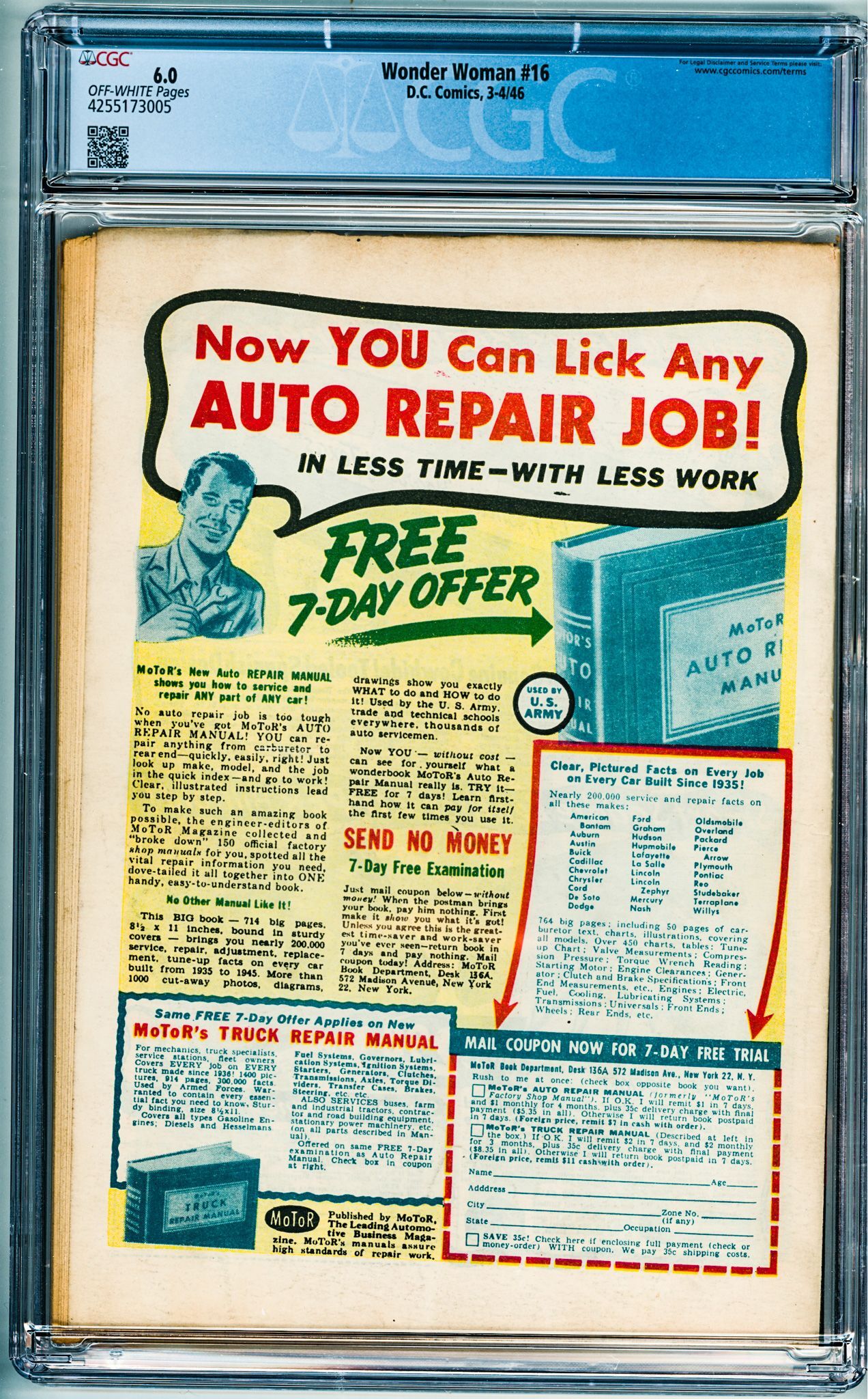 Wonder Woman #16 (1946) CGC 6.0! OW Pages!