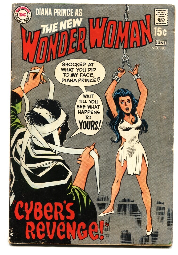 Grade: VG-WONDER WOMAN #188 1970 WW chained up on cover!-DC SILVER AGE-VG- WONDER WOMAN without costume. Grade: VG- SKU: DO-16-601