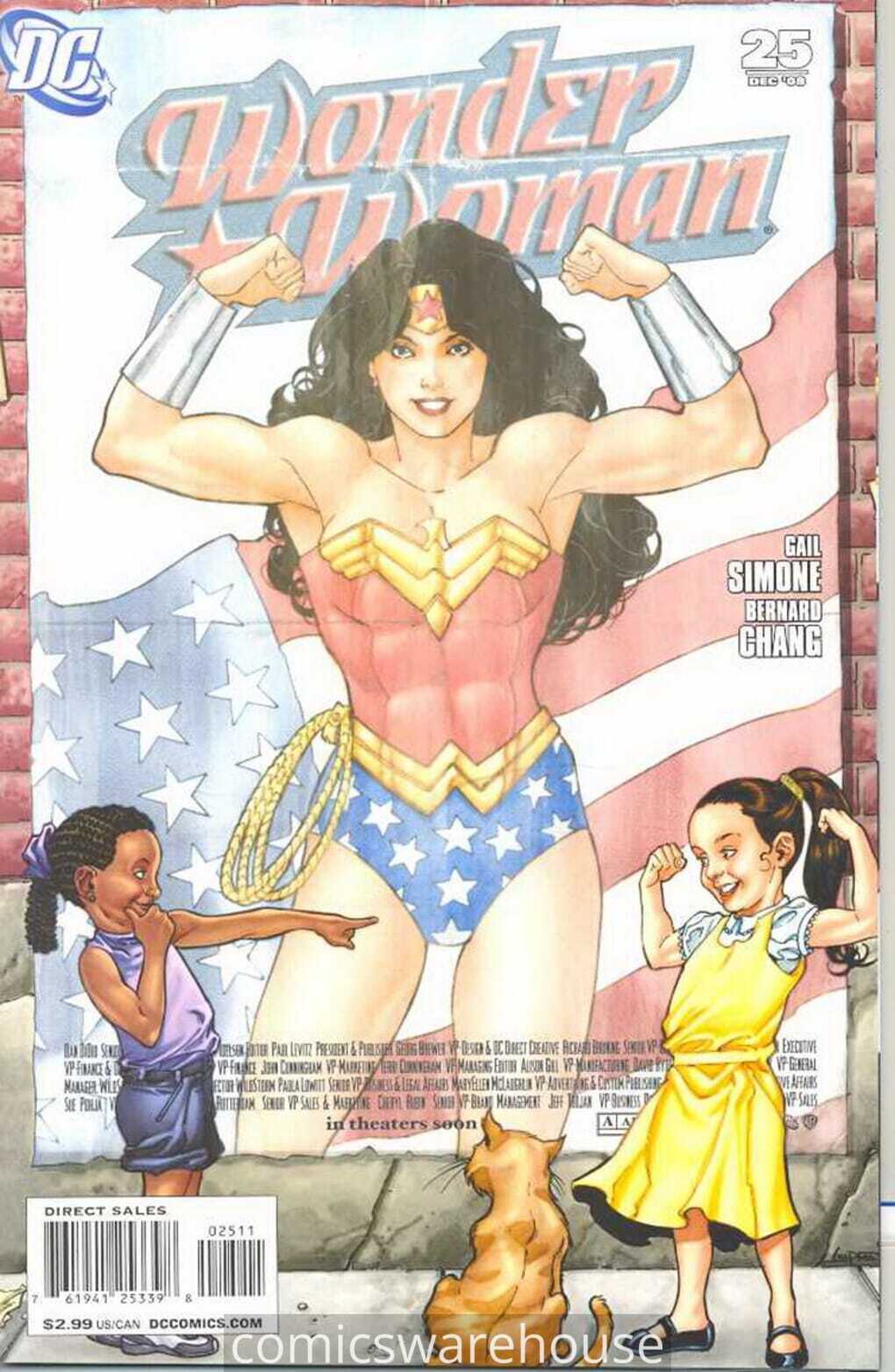 WONDER WOMAN (2006 DC) #25ItemID: CXWH-A94184 Grade: at least 9.2 Includes Free Bag and BoardWriter: Bernard Chang Artist: Bernard Chang Cover: Bernard Chang Written by Gail Simone Art by Bernard Chang Cover by Aaron Lopresti Who wouldn't want to see their name in lights? Wonder Woman that's who and she's now hell bent on putting a stop to the Wonder Woman movie. At least she is until she realizes the impact she has on young women and girls and must decide what's more important to her - her sanity or her conscience? Plus Wonder Womans' courtship of Nemesis takes a daring turn as the series hits issue #25! On sale October 8 � 32 pg FC $2.99 USImage below of the issueTERMS & INFORMATION BAG & BOARD All our comics are individually bagged and boarded. PAYMENT Please use the shopping cart system. Shipping should combine by Hip's calculation for shipping via first class mail Combined shipping adds 95 cents a book for US shipping. After 6 or 7 books please wait for or request a combined invoice it will be based on actual shipping costs from NY SHIPPING & HANDLING We Ship World-Wide using the Global Shipping program All US shipments are via USPS First Class or Priority Mail. OR UPS which is cheaper on larger boxes Combined shipping adds 95 cents a book for US shipping. After 6 or 7 books please wait for or request a combined invoice - it will be cheaper than the automation. The automation is there to accound for a small number of books combining to meet the cost between first class and priority mail. Invoices are sent regularly - so if you are still bidding just send me a quick message and ignore the invoices until you are done. PACKAGING We carefully pack each item individually and ship in a Diamond Comics T-Fold box or in a well packed box for larger shipments. All shipments have delivery confirmation tracking. RETURNS Your satisfaction is guaranteed. We accept returns for the full cost of the auction (not including postage) within 30 days of shipping out your order for any reason. Credit is given on receipt of the item.Seller Information