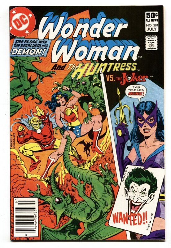Grade: NM-Wonder Woman #281 1981- Demon- Joker- Huntress DC Comics NM- JOKER cover. High grade flat copy. Sharp corners. Grade: NM- SKU: CK46-175