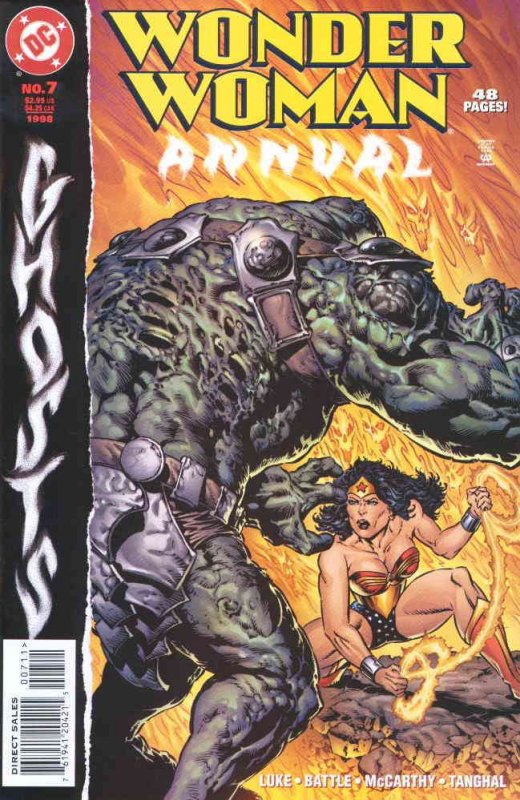 Item: Wonder Woman (2nd Series) Annual #7 | Publisher: DC | Cover Date: September 1998 | Writer: Eric Luke | Artist: Eric Battle | Cover Artist: Bernie Wrightson | Appearances: Wonder Woman (Diana) | Storylines: The Distance Gone | Notes: Ghosts | With Economy shipping, each additional comic ships for just 50 cents more to customers in the USA. This listing contains a stock photo and information from ComicBase™ and © Human Computing. The stock photo is for reference only. If you would like to see a photo of the actual item, please message us prior to purchasing.Seller Information