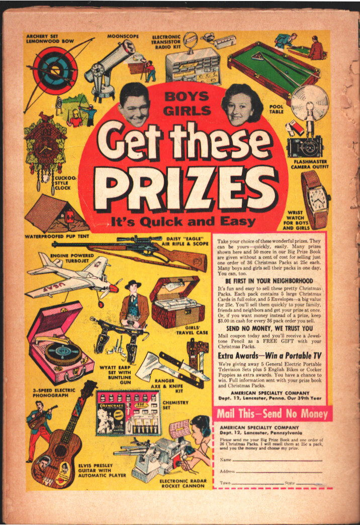 Grade: P/FRWonder Woman #94 1957-DC-Wonder Woman teams up with Robin Hood & watches the Superman TV series-P/FR -Wonder Woman teams up with Robin Hood who also appeared in a DC comic series -Wonder Woman watches the Superman TV series -Spine split about 60% of the way down, small pieces missing from spine and page bordersin spine aera-all art & text OK Grade: P/FR SKU: EC-14-097
