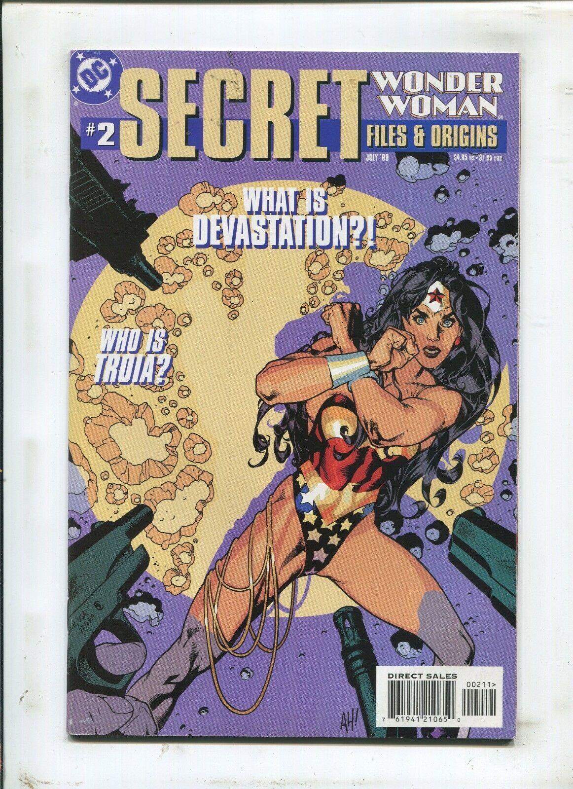 Grade: 9.2 NM-Wonder woman secret files #2 - what is devastation? - (9.2) 1999size: 7" x 10"this item was uploaded by hr.If you have any specific questions or requests, please ask us prior to ordering and we'll get back to you as soon as we can. If there are any problems with your order whatsoever, please message us before leaving feedback and we'll be happy to work with you to fix the situation! We ship worldwide, combine purchases, and charge exact shipping. The price may vary based on size, weight, and location. If you are automatically overcharged for shipping, message us and we'll be happy to revise the invoice or refund you the excess amount. If you have any questions regarding shipping, please message us. International buyers - please note: import duties, taxes, and charges are not included in the item price or shipping cost. These charges are the buyer's responsibility. Please check with your country's customs office to determine what these additional costs will be prior to bidding or buying. Payment can be made by paypal and credit cards directly. 87,000+ items in total in my Hip store! Frequently asked questions: when are your operation hours?Our in office hours are monday - friday, 11 am - 9 pm. We are not open on weekends, so if you send us a request on friday evening we won't get back to you until monday afternoon. Please don't take it as us ignoring you! We will work on your request monday and get back to you as soon as we can. Also, if you order from us on a friday evening or saturday morning we won't start processing your order until we open on monday. That means on monday it will be pulled and prepped for shipping, then picked up by the postman on tuesday morning.When will you ship my item? The tracking hasn't moved.We realize you're eager to get your item, so if the tracking hasn't moved in a few days please don't be concerned. We give the postman a lot of packages daily, sometimes as many as 100, so he does not scan each item for us upon pickup as he says it would be too time consuming for him to do so. If you get a tracking number from us, that almost always means your item was picked up by the postman the next business day. The usps is also imperfect. There are times when the tracking won't even show movement until it's in your area's regional distribution center. This is normal in our experience. Is the item pictured the exact one for sale?Yes! We don't use stock images and go through great lengths to scan or photograph everything we list. The item pictured is exactly what you should receive unless it is a fixed price listing with multiple items available. Can you issue a coa? We can, upon request. Please make sure you leave us a note while checking out and shoot us a message immediately after requesting one, just to be sure. How do you grade?Grading is very subjective, but we are professionals with decades of grading experience between us who try the best we can to accurately describe the condition of the items we list. Anthony is an overstreet comic book price guide advisor please see the grading chart below for a breakdown of how we grade: note: we don't grade any raw books higher than 9.2, as once you go higher than that grading gets really subjective. If you buy a nm book from us, it may very well be higher than 9.2 but we play it safe and grade conservatively. 9.2 nm near mint 9.0 vf/nm very fine/near mint 8.5 vf+ very fine+ 8.0 vf very fine 7.5 vf- very fine- 7.0 fn/vf fine/very fine 6.5 fn+ fine+ 6.0 fn fine 5.5 fn- fine- 5.0 vg/fn very good/fine 4.5 vg+ very good+ 4.0 vg very good 3.5 vg- very good- 3.0 gd/vg good/very good 2.5 gd+ good+ 2.0 gd good 1.8 gd- good- 1.5 fr/gd fair/good 1.0 fr fair 0.5 pr poorhow do you ship comics? We ship in rigid cardboard mailers to protect your comic book from the worst the mail system has to offer. Price varies based on the number of books you purchase, but we try to keep costs as low as we can and charge exact shipping. If it looks unusually high to you please send us a message and we'll be happy to double check for you. Do you combine shipping? Yes, of like items. Such as: several comics can fit in one cardboard mailer, as can more than one record. Multiple art pages can easily be combined because they are light and thin. Where combined shipping differs is with size and weight. For instance, two statues require a much bigger box. Same goes for cgcs, as the package gets bigger and heavier as you go. Do you ship well? I've had some bad experiences... You needn't worry; we are professionals who value your business and want your item to arrive safely as much as you do. I have been collecting for over 30 years. I send out items the way i would like to receive them. The tracking says my item is "out for delivery" in new jersey. Why is that?If the tracking indicates that the item is "out for delivery" in nj don't worry, it's just what the tracking says when it's carried over from the postman to the sorting center. This is normal for our post office and will not impact you receiving your item in a timely matter.What is the difference between a run and a lot?Good question. A run will be a collection of consecutive issues with no breaks in between them. If it says run of #s 1 - 50 you will receive 50 consecutive comics. A lot will be within a certain range, so a 50pc lot will not contain consecutive books.I changed my mind after successfully winning the auction or fixed price listing, will you cancel the transaction? Please only bid or hit buy it now if you are willing to follow through and pay for the item, we will not cancel the transaction. As a seller, Hip penalizes us every time we cancel an order, so it is detrimental to our business to do so. Therefore if you will not pay, then you'll have to let Hip cycle this to an "unpaid item" and accept whatever action Hip deems necessary. 87,000+ items in total in my Hip store! Meet our staff: pictured left to right, my employees: chris, connelly, bobby, & shannon alongside my family