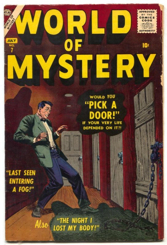 Grade: FN World of Mystery #7 1957- FINAL ISSUE- Pick a Door FN John Severin horror cover. Final issue. Marvel chipping keeps this out of the VF range. Grade: FN SKU: LI-88-133