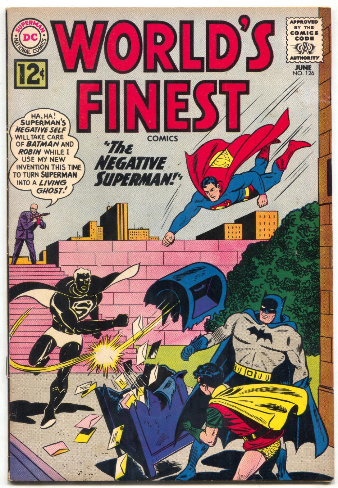 World's finest #126 batman superman green arrow 1962 dc fn+ batman and the negative superman. Green arrow & aquaman appear. Glossy cover. 1962 grade: fn+ sku: do-02-132