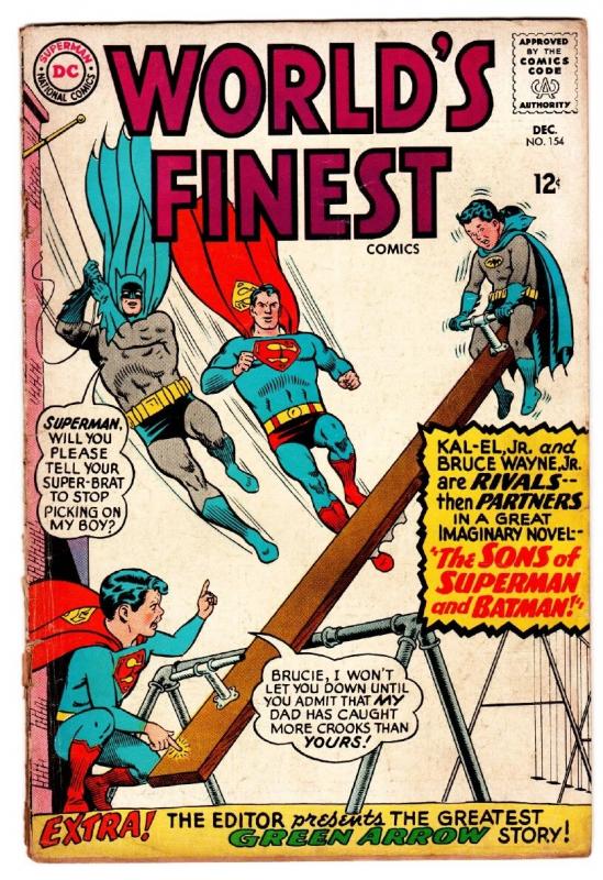 WORLDS FINEST #154 comic book 1965 GREEN ARROW-BATMAN-SUPERMAN