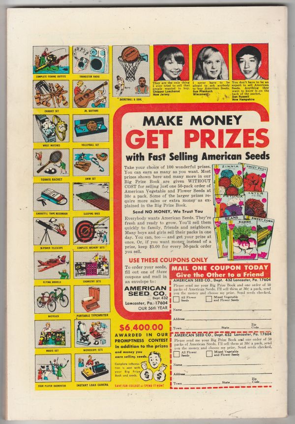 Wow! This book has deep rich color and very sharp eye-appeal on this all-time-classic hard-to-get in high-grade100 Pager Deadman cover! There are very light small bend-lines at the thumb-area outer-edge of the front cover. The back cover is sweet! We have adjusted the grade accordingly. There is an arrival date in the W of World's on the front cover that we almost missed which does not affect the grade.