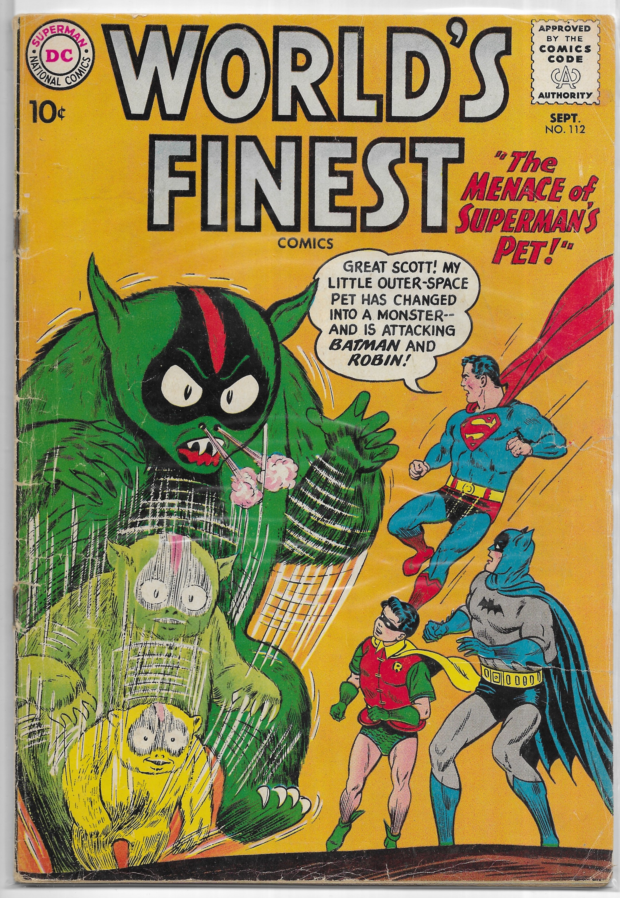 silver age super-hero comic book World's Finest Comics Vol 1 112 World's Finest Comics #112 Date: September 1960 Publisher: DC Comics Main Feature: Superman, Batman, and Robin: "The Menace of Superman's Pet! ... Read More