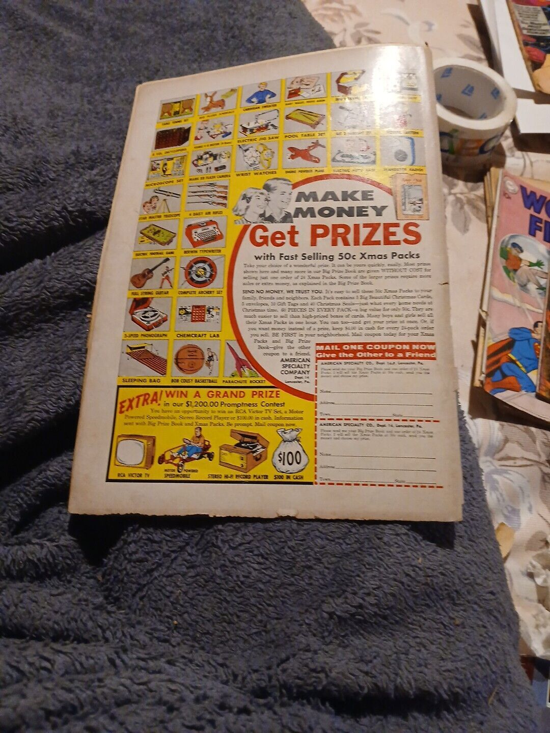 Grade: 1.5 Fair/Goodadd 3 items to your shopping cart and get 5$ off each when you pay for them as one order ##OFFER DOES NOT INCLUDE ITEMS WITH BEST OFFERS OR ONES WHERE I HAVE SENT YOU AN OFFER### Sadly it grades low as it has bends tears water damage cover detached and flaking spine split 2/3rds of the way it is missing the bottom staple and other defects. I would call it around a 1.5 fr/gd out of 10 condition. See pics and judge for yourself before purchasing as grading is subjective. While we accept returns we do not accept returns for defects that are listed in the description or clearly visible in the pictures regardless of how big or small they are. It is your responsibility as a customer to review any information or pictures given before purchase. The grading is only our opinion and we are not responsible if you choose to have it professionally graded after it leaves our possession or interprit the grading scale differently. We conform to the Overstreet grading guide standards as they have been the gold standard for more than 50 years in the comics industry and are more strict and accurate than most professional graders as they base their grading off of overstreets original grading system. #####add 3 items to your shopping cart and get 5$ off each when you pay for them as one order ##OFFER DOES NOT INCLUDE BEST OFFERS### also as Hip now requires us to click a button that says condition and it auto applies information to our listings the information on the "condition" section should be ignored as it does not conform to comic book grading standards and is only included because Hip requires it even though it is extremely inaccurate! Check our hand typed notes on each item in the description section where we list defects and grade for each individual comic for accurate grading information. We have been selling for more than 20 years with thousands of items! Most of our Golden Age is listed as the lowest Buy It Now price on Hip and often the only copies available! We have more than 6,000 good feedback buy with confidence.