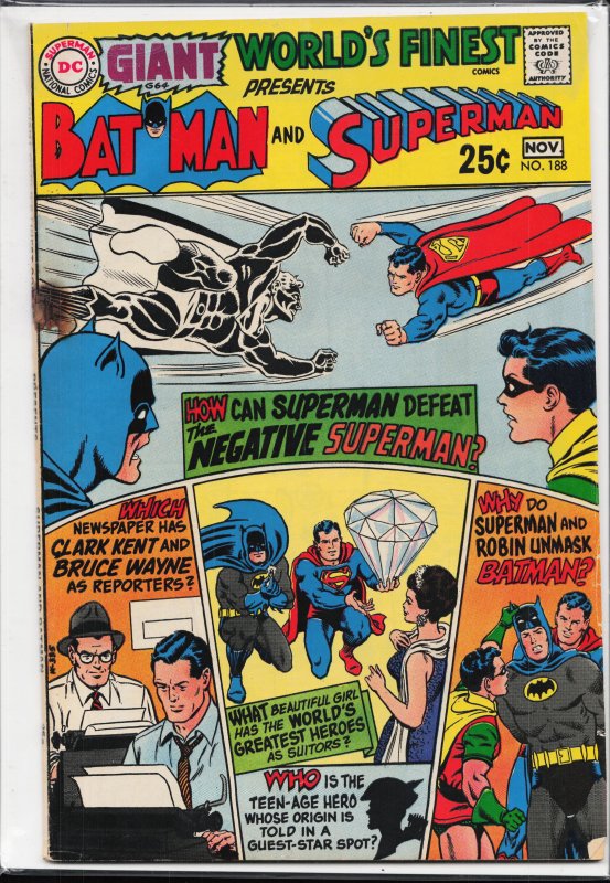 World's Finest Comics #188 (1969) Superman and Batman and Robin