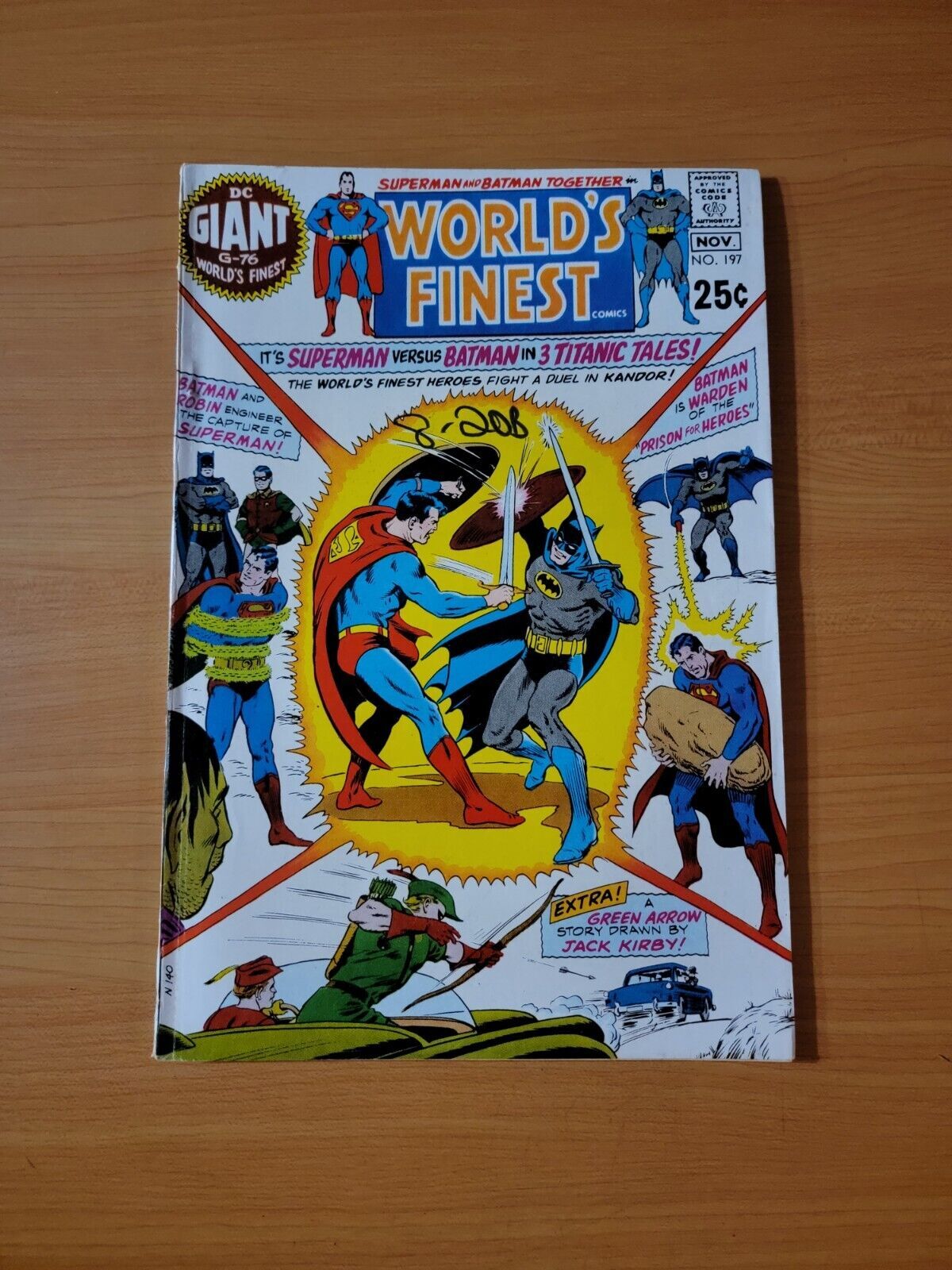 Item DescriptionWorld's Finest Comics #197Publisher: DC ComicsPublished: 1970Item Grade/ConditionGrade: VERY FINEFor more information about this grade and other grades, please see our grading standards.~ WE TAKE HIGH DEFINITION PICTURES OF OUR COMICS ~ For more detail use the ZOOM Function and check them out yourself! ~Shipping Info:United States: Comic Book & Magazine Orders of all sizes, big and small ship for a flat Single Shipping ChargeInternational: We use Calculated Shipping! ~ This insures that you get the LOWEST POSSIBLE COST! ~ Please give us one business day to calculate large orders! The Calculator for Hip is pretty bad for international, contact us if you are looking to order multiple books so we can help you make it work on the back end! As a courtesy to our customers, we insure all orders over 50$ US ~ YOU DONT PAY EXTRA!Delivery TimeWe process and ship all orders within 1 business days. Once shipped, estimated U.S. transit time is 2-10 business days; international 14-21 business days.(Orders placed on Friday afternoon as well as weekends will be shipped the next business day as we do not ship on the weekends).PackingOmnomax Traders has mastered packing to ensure our orders of a "damage-free transport."Using the following methods, we have seen a nearly perfect 99% success rate for undamaged comics!Here is how our orders ship:All Orders :Bagged AND Boarded, ALWAYS NO EXCEPTIONS!Shipped in a Gemini Comic Mailer OR Tightly secured between 4x stiff pieces of corrugated cardboard (double Sandwiched)Sealed on all 4 sides with strong packing tape (Items doesn't even wiggle).:*Now this method is nearly perfect! however we have seen damage happen to items ( only once or twice a year ) ~ this is often due to bad handling by the postal service. Always remember to contact us if this happens! we are committed to quality service!*Offers History