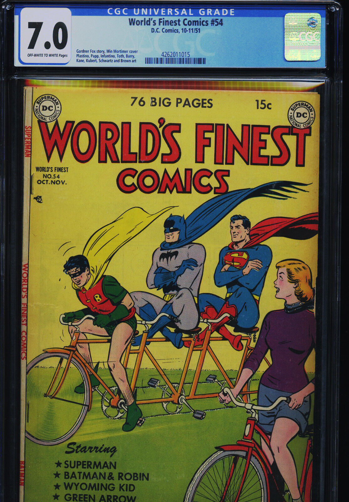 WORLD’S FINEST COMICS #54 - CGC-7.0, OW-W - Batman - Superman - Golden Age