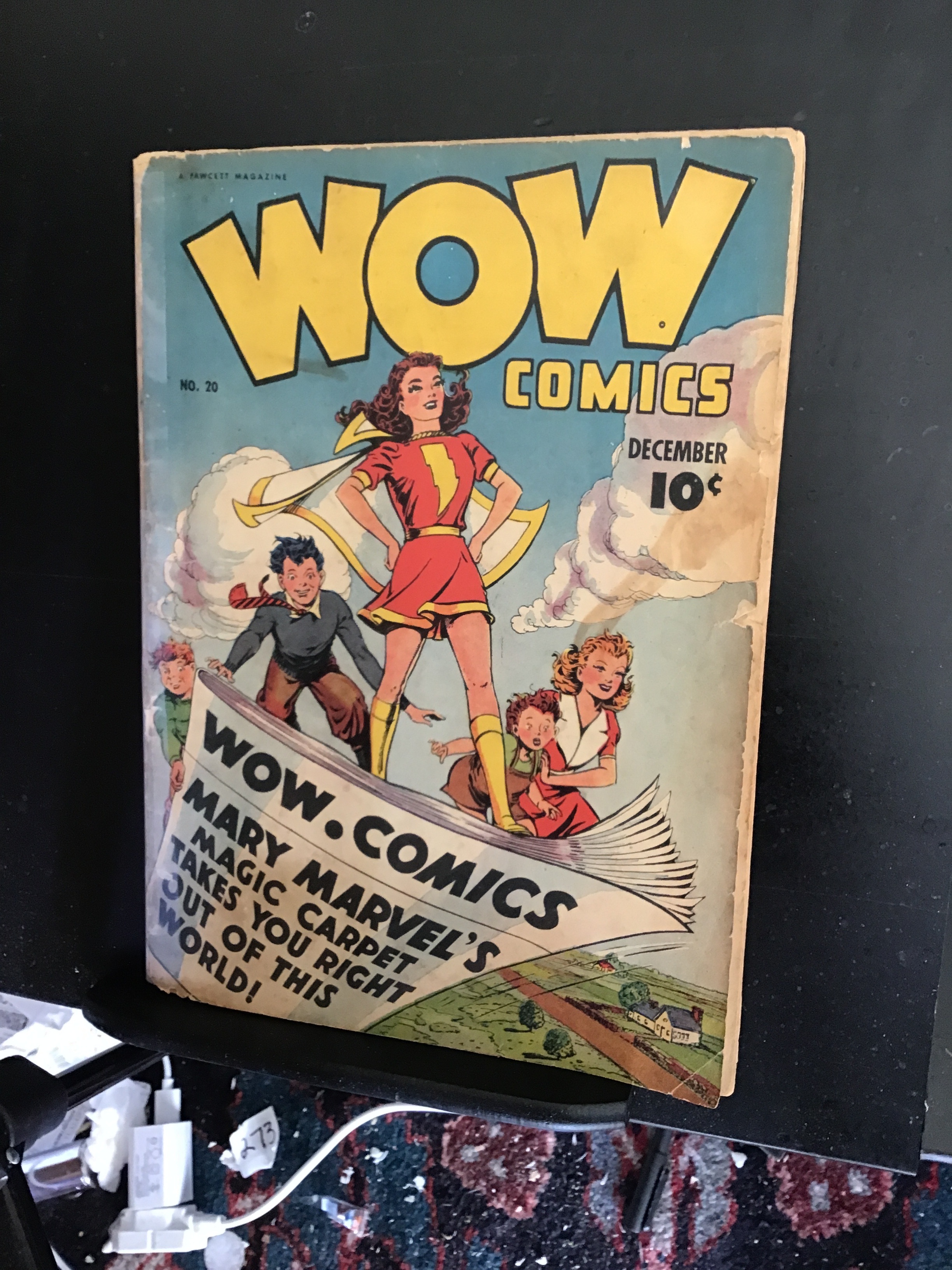 Wow Comics #20 (1943) this book has deep rich color on this all time classic Mary Marvel cover. With cream/Slight heavy cream pages and inside covers. We have adjusted the grade accordingly for The page quality And a Fully taped spine as the cover was barely attached at one staple. With light wear appropriate grade. Any shadows that are on the books are from the scan her and are not actually there unless otherwise duly noted!Seller Information