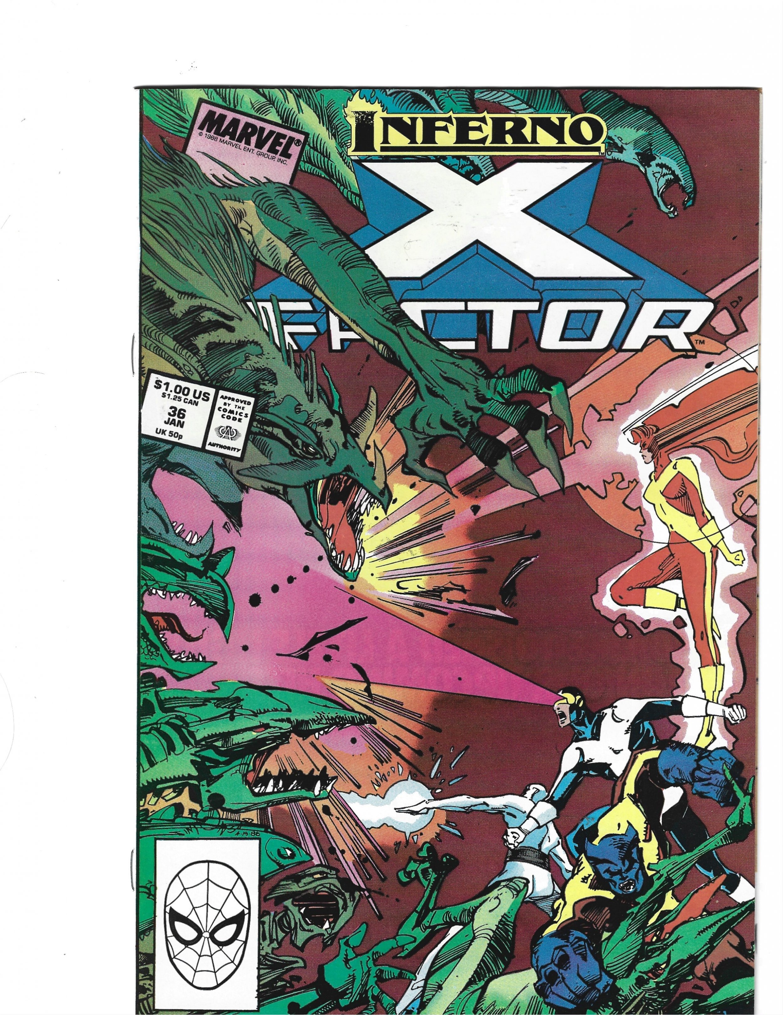 X-Factor #36 Direct Edition (1989) I have graded the comic book, using the Overstreet Grading Guide, at FINE with the following defects: Light stress marks along the spine. The corners are rounded. There is yellowing of the pages.Seller Information