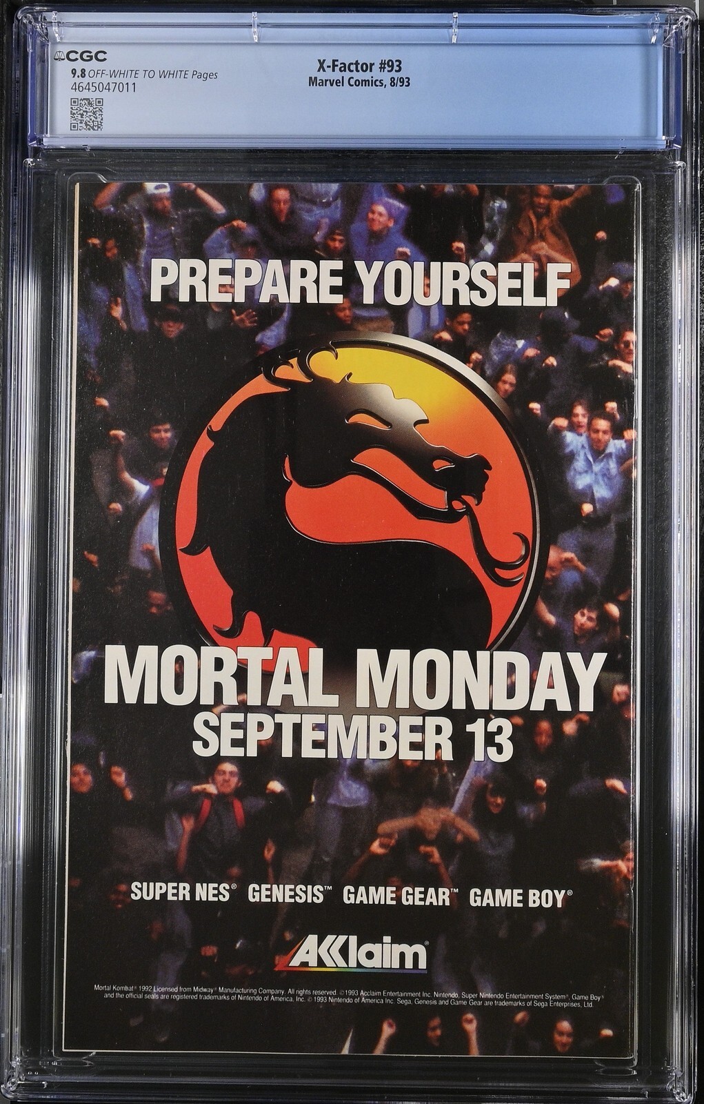 X-Factor #93 from 8/93 offers a glimpse into the era's iconic storytelling. This issue is a must-have for collectors. Add this CGC 9.8 graded comic to your collection today!Attribute DetailsCertNumber 4645047011Disp ... Read More