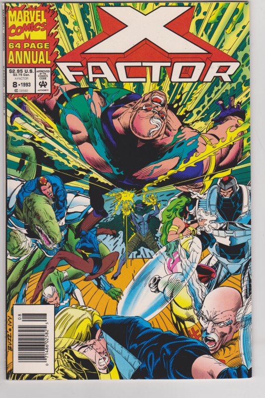 X-Factor Annual #8 by Marvel Comics copyright 1993. I have graded the comic book, using the Overstreet Grading Guide, at FINE/VERY FINE with the following defects: Light stress marks along the spine. The corners are rounded. There is yellowing of the pages.Seller Information