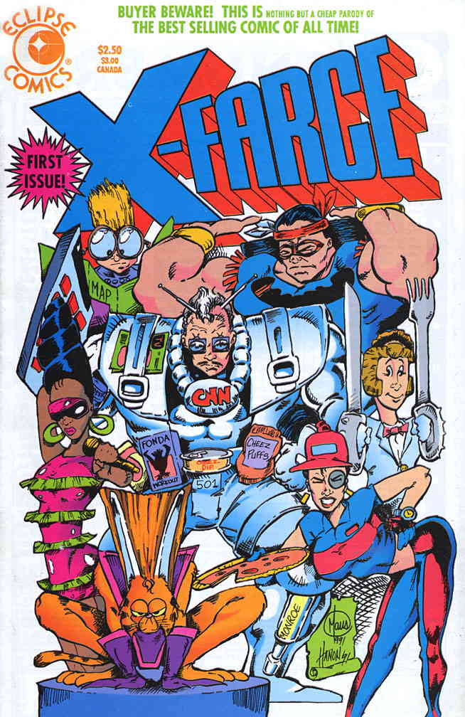 Item: X-Farce #1 | Publisher: Eclipse | Cover Date: January 1992 | Writer: Don Chin | Artist: Bill Maus | Cover Artist: Bill Maus | Storylines: X-Farce | Notes: X-Force Parody; B&W | With Economy shipping, each additional comic ships for just 50 cents more to customers in the USA. This listing contains a stock photo and information from ComicBase™ and © Human Computing. The stock photo is for reference only. If you would like to see a photo of the actual item, please message us prior to purchasing.Seller Information